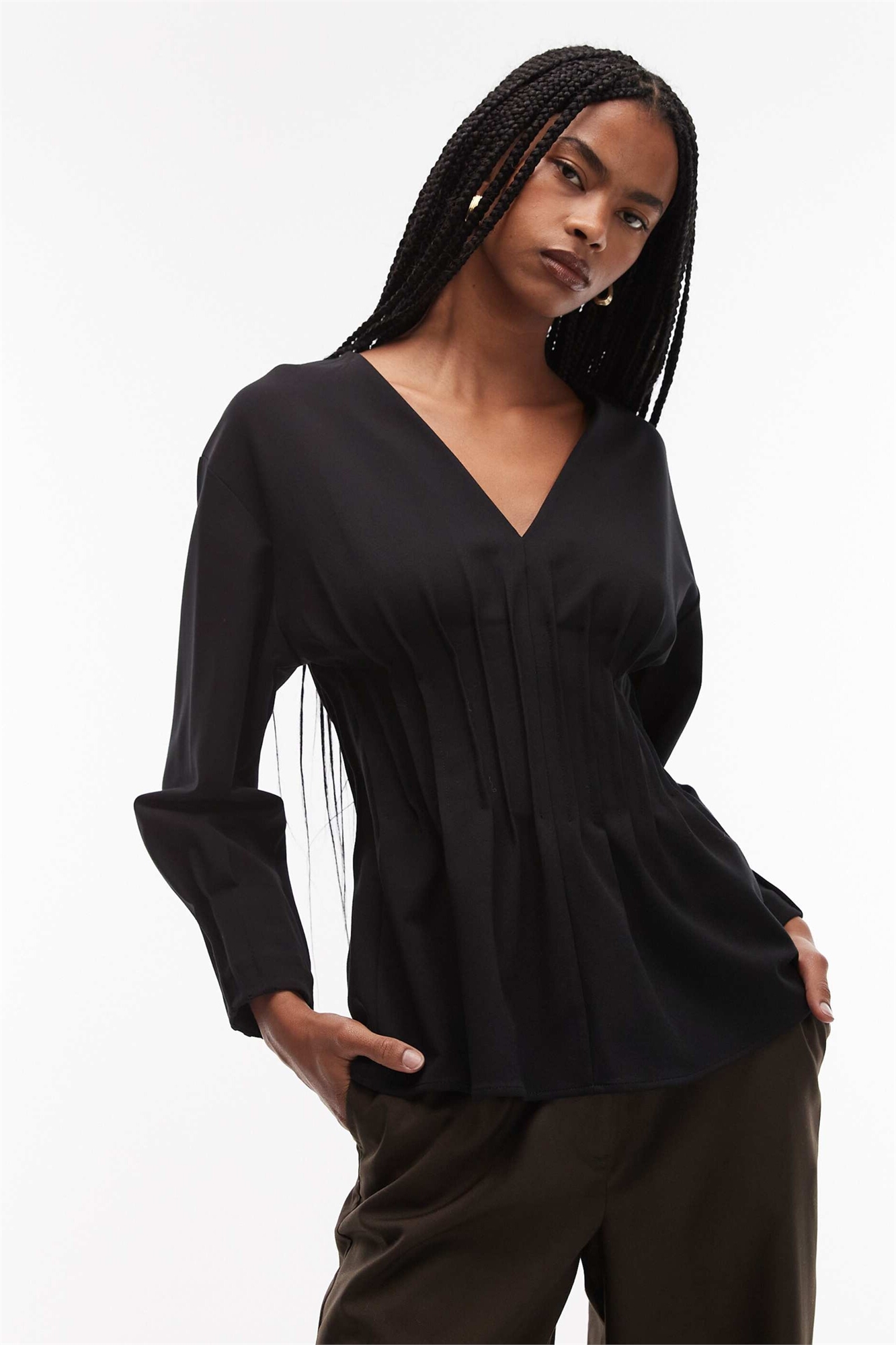 Блузка из эластичной ткани с плиссированной талией в стиле корсета