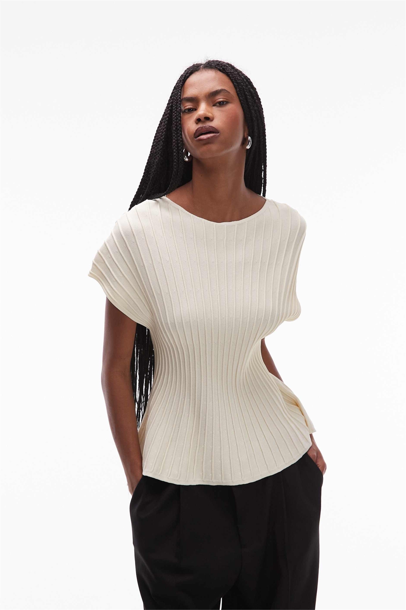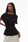 Топ с пеплумом, ребристым кроем и затянутой талией