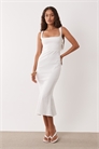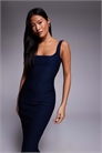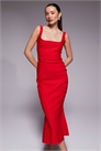 Платье средней длины из бенгалина без рукавов с квадратным вырезом и расклешенным низом