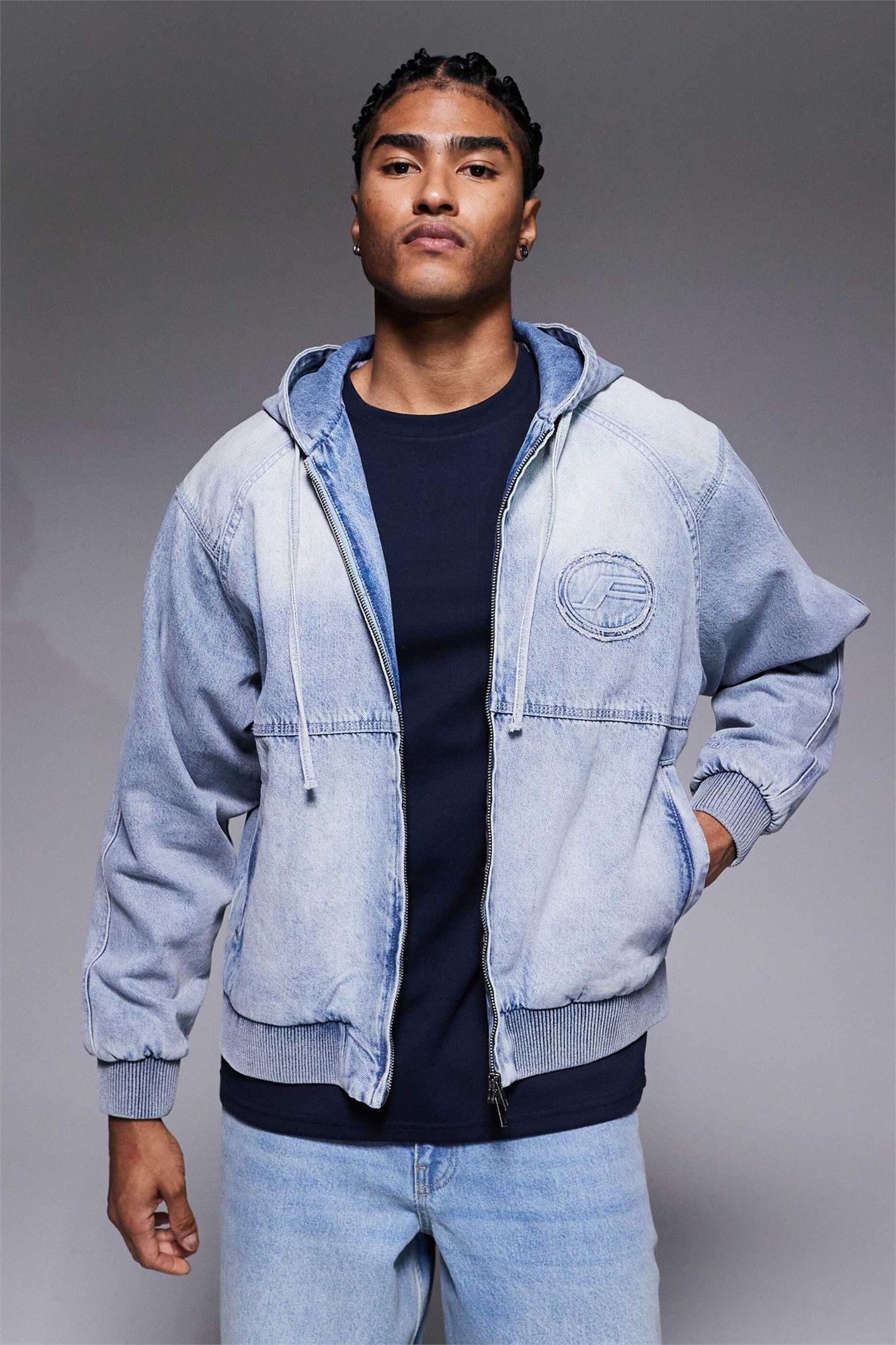 Джинсовая куртка с капюшоном и утеплителем