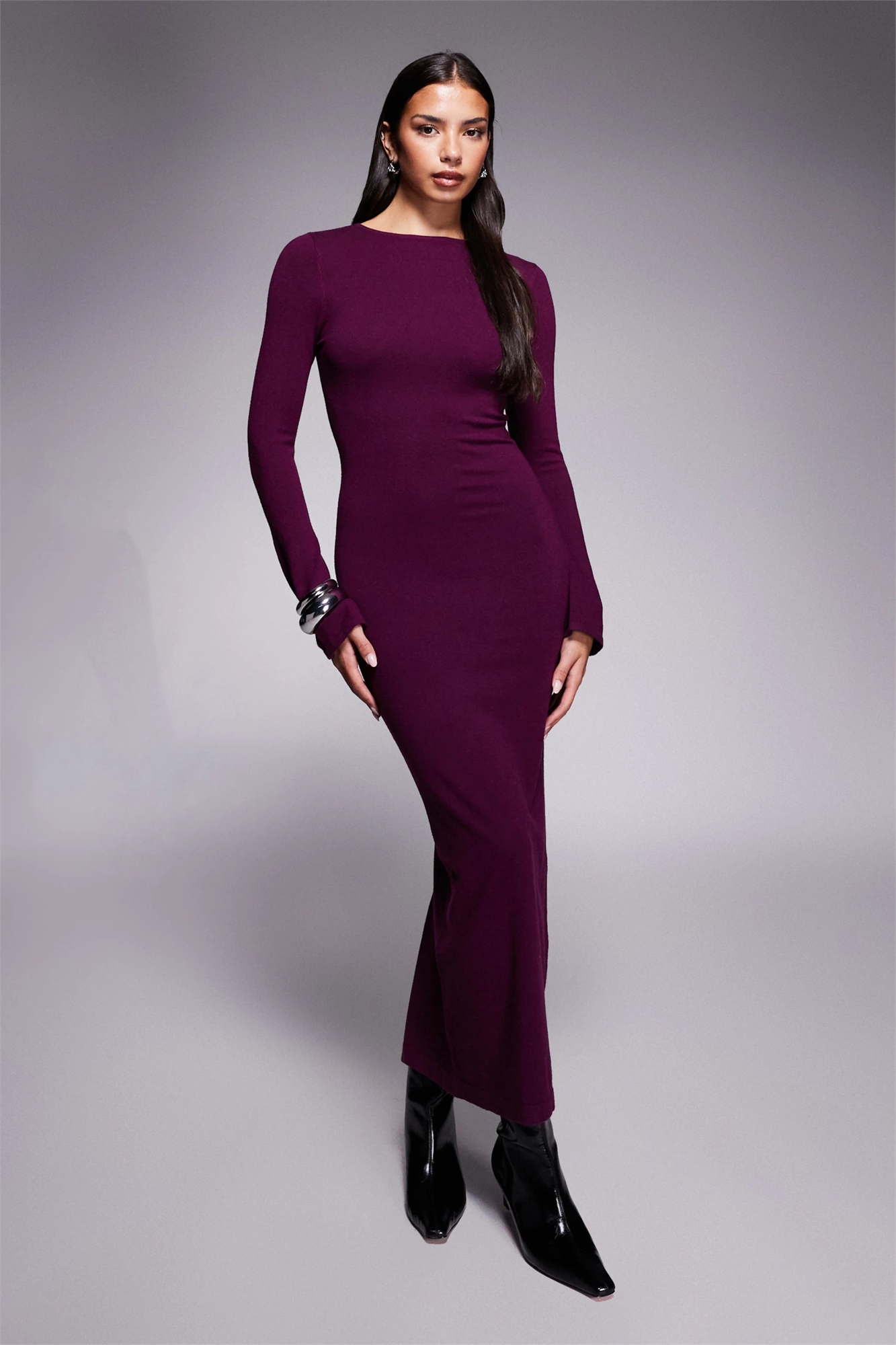Плетеное макси-платье облегающего кроя с расклешенными рукавами