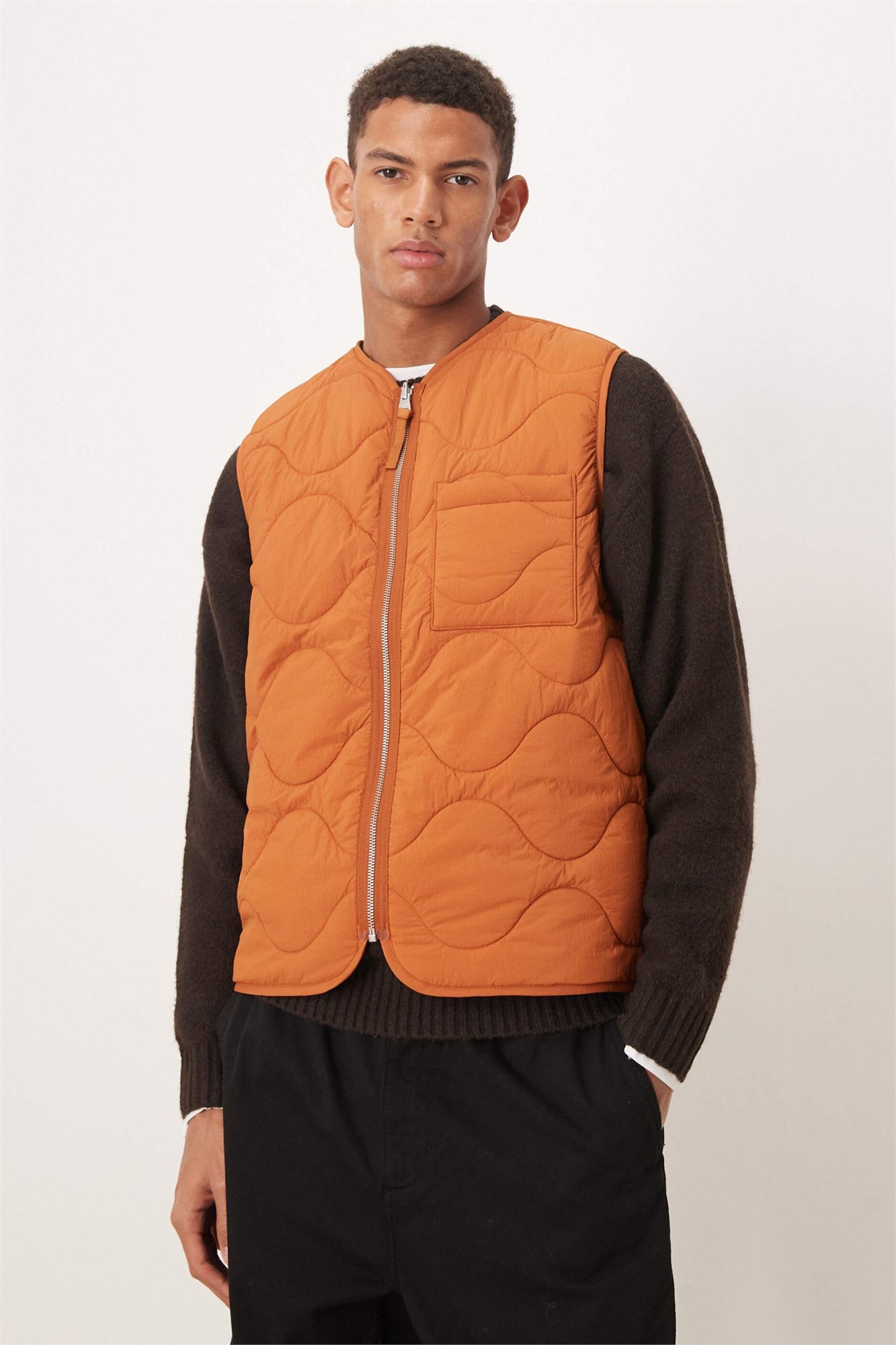 Стеганый жилет с застежкой-молнией спереди оранжевого цвета