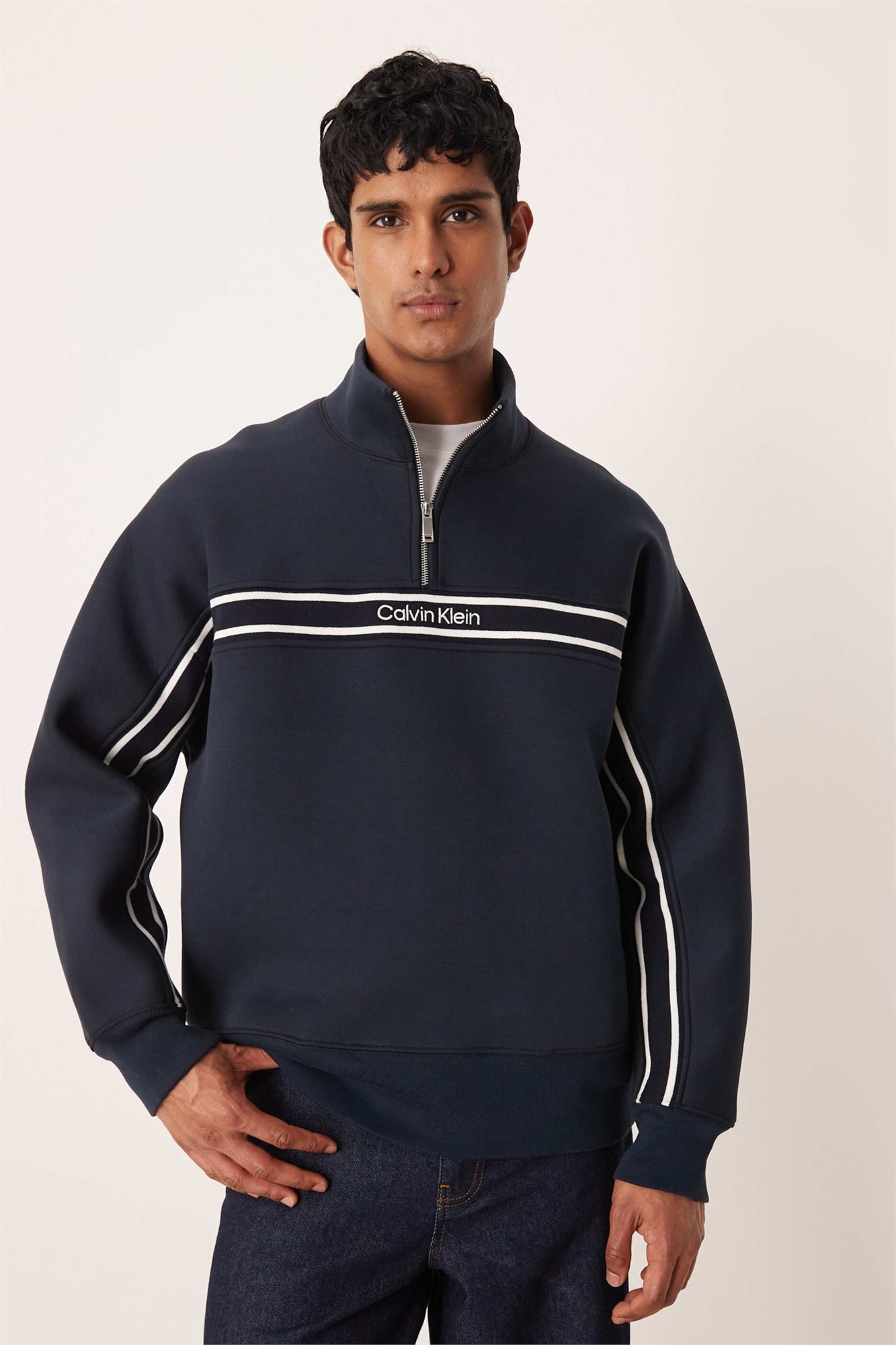 Свитшот с центральным блоком в полоску и четвертью застежки-молнии