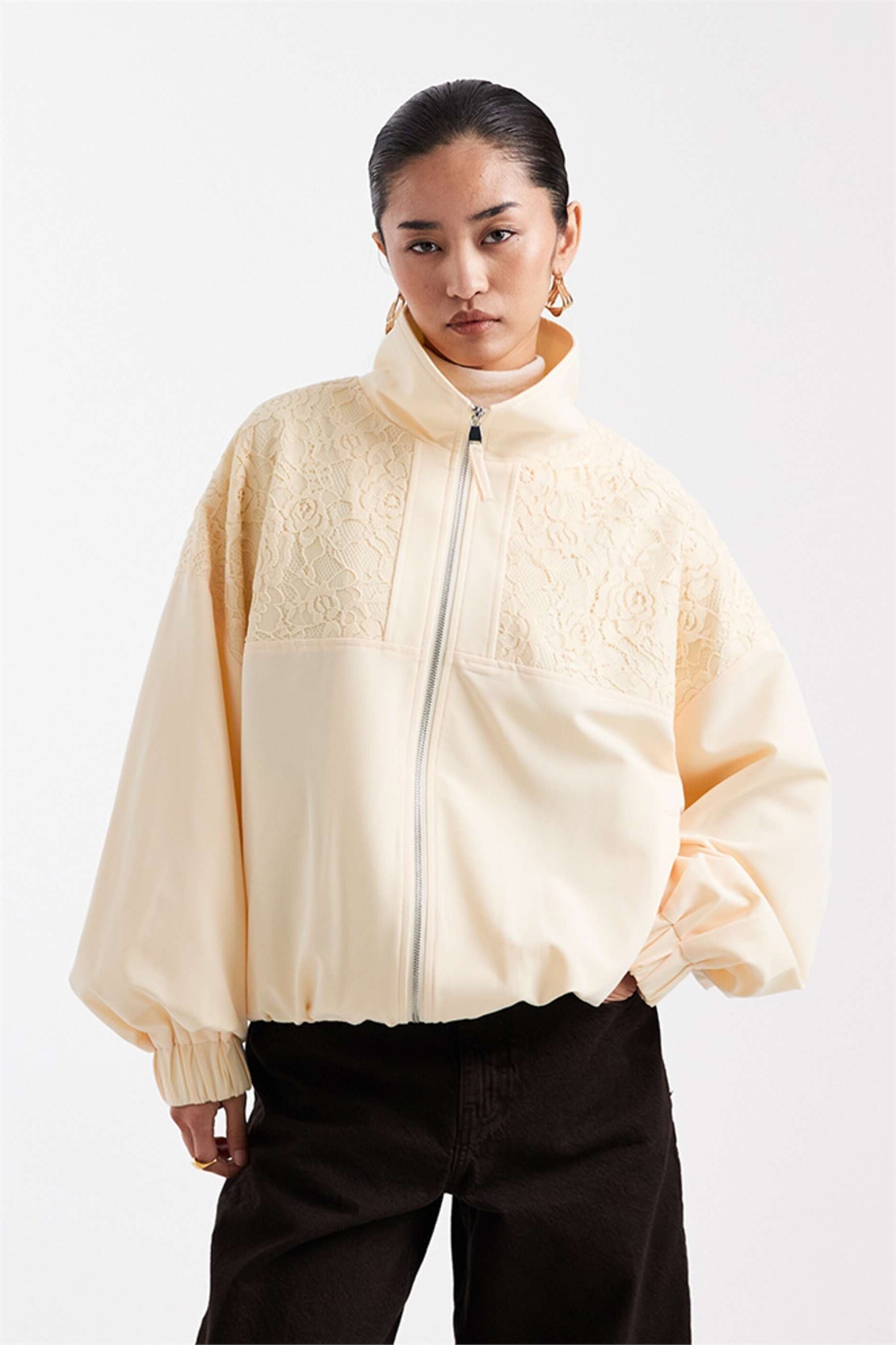 Спортивная куртка с кружевной вставкой и воротником-воронкой