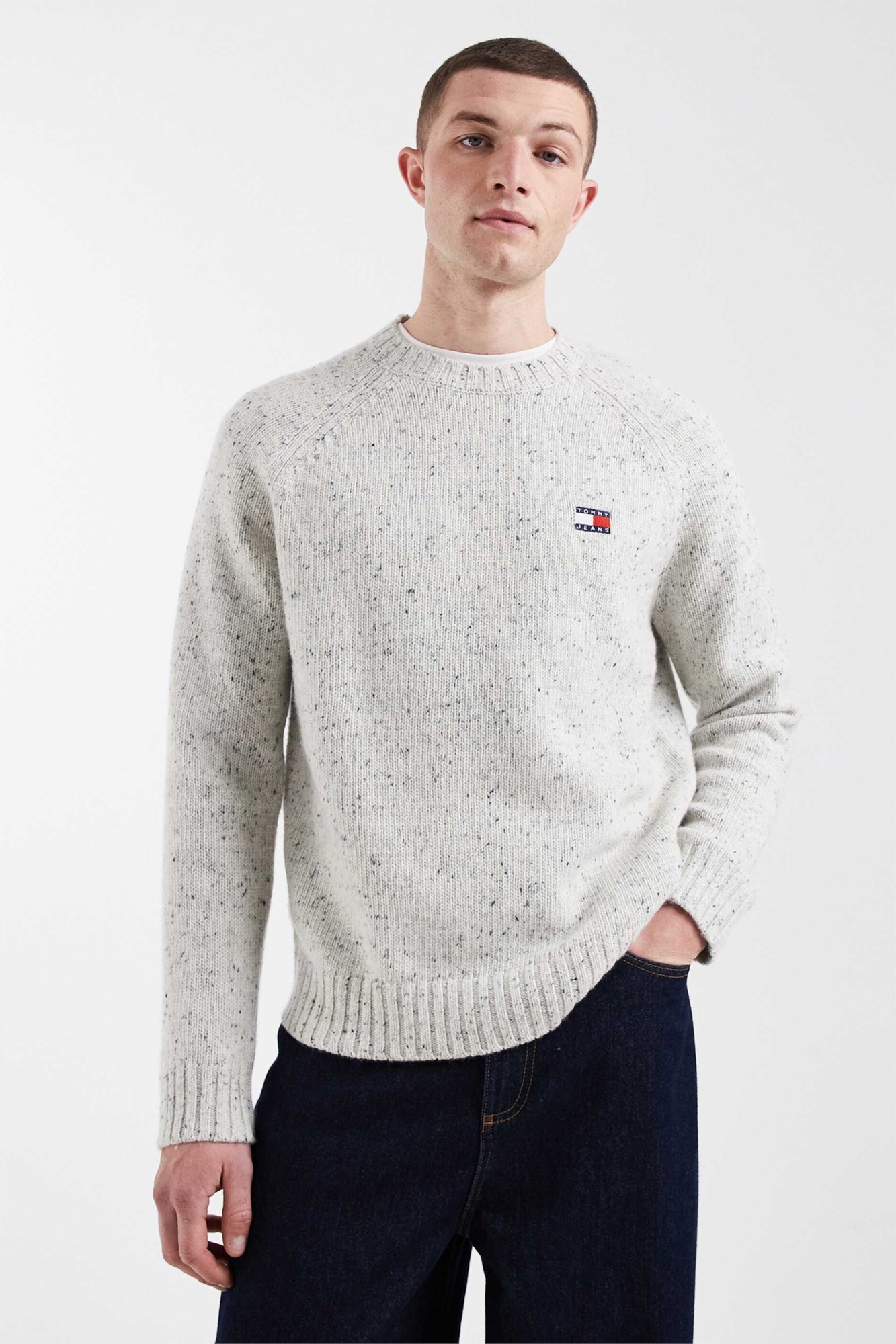 Свитер с логотипом на груди и крапчатым узором