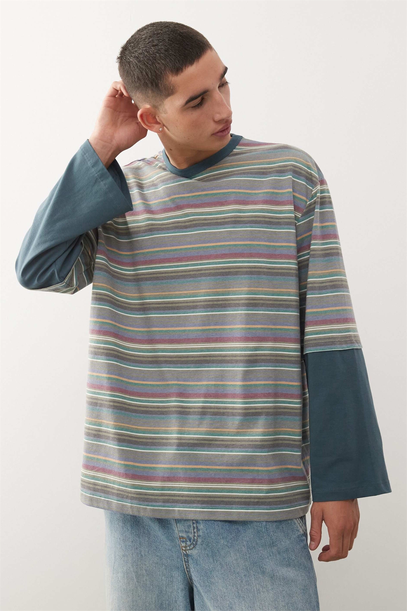 Футболка свободного кроя с длинными рукавами из двух слоев ткани