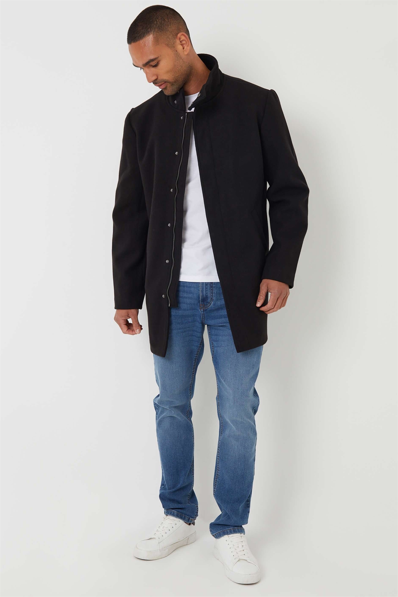 Пальто с воротником-воронкой из искусственной шерсти с длинным покроем