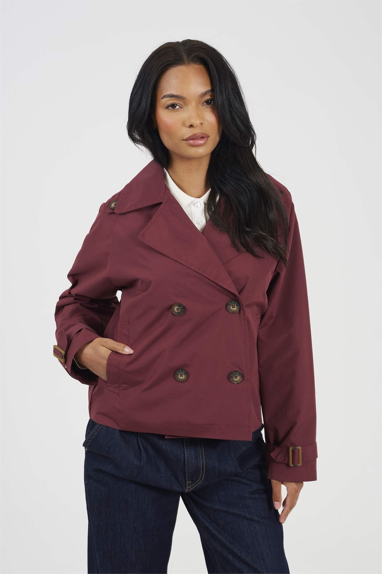 Короткий тренч с двойной застежкой