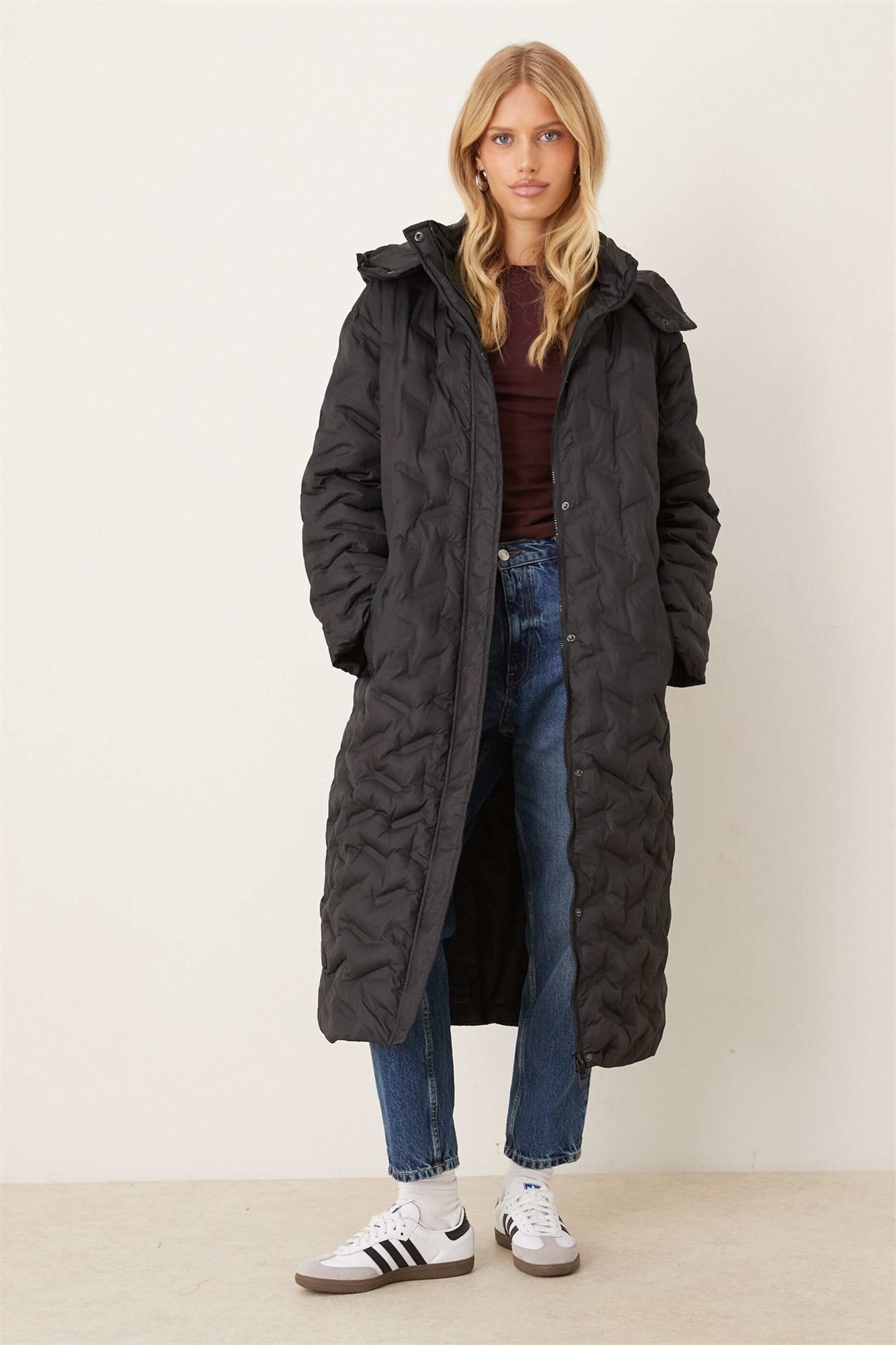 Стеганая утепленная куртка-лонглайн с термосваркой