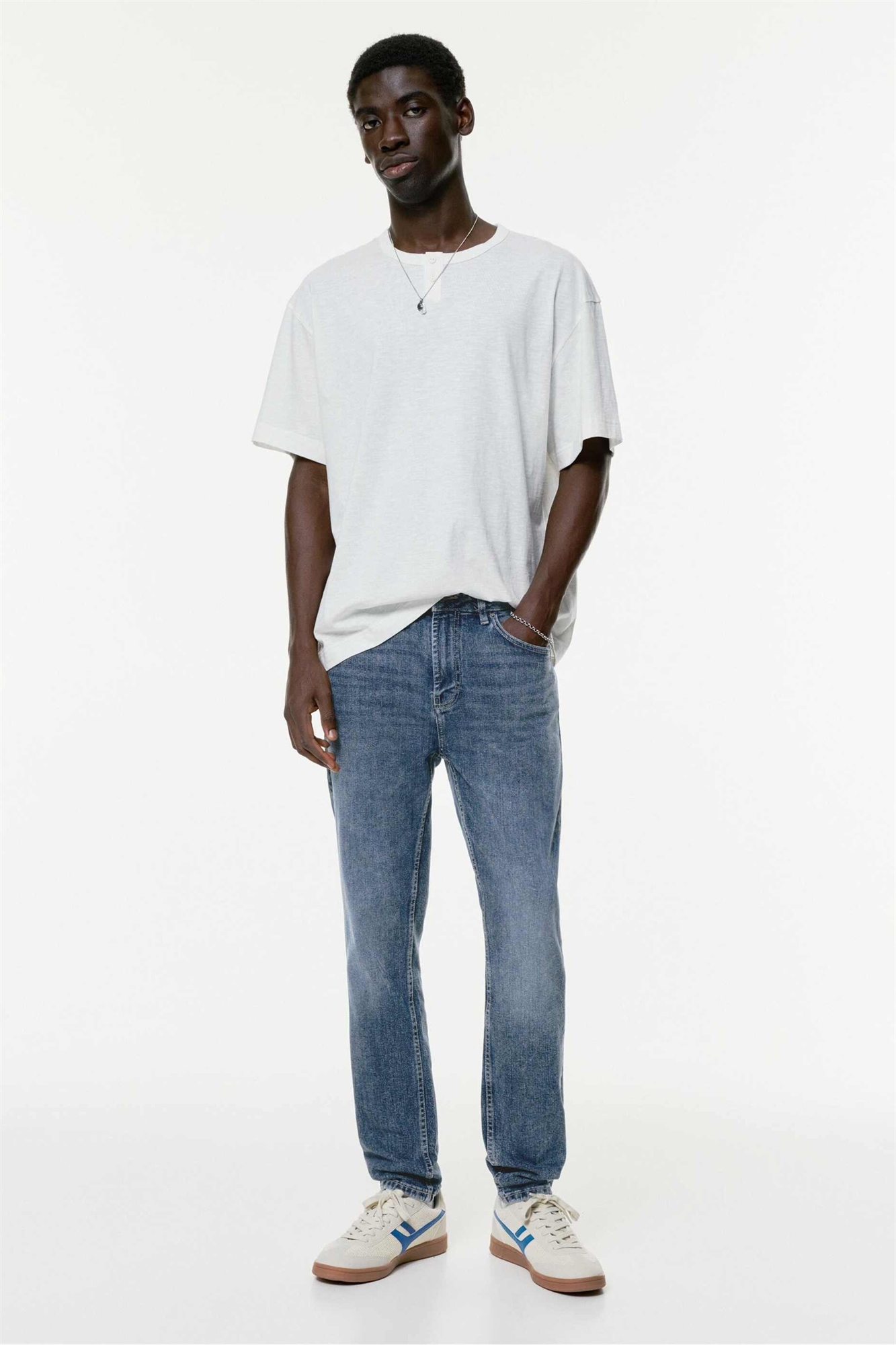 Эластичный деним: средне-синий оттенок Основной материал: 99% хлопок, 1% эластан.