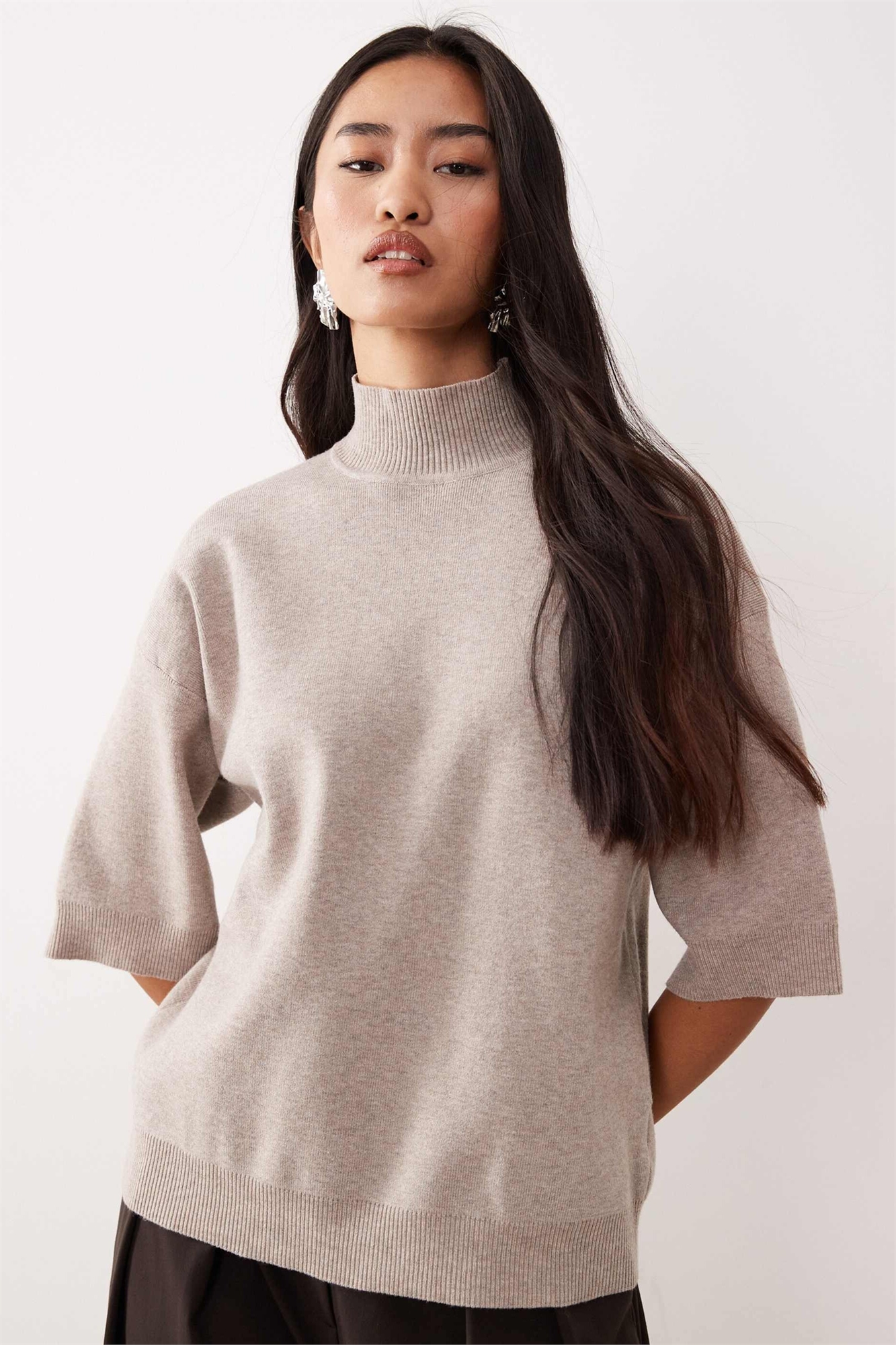 Свитер с высоким воротником и укороченными рукавами