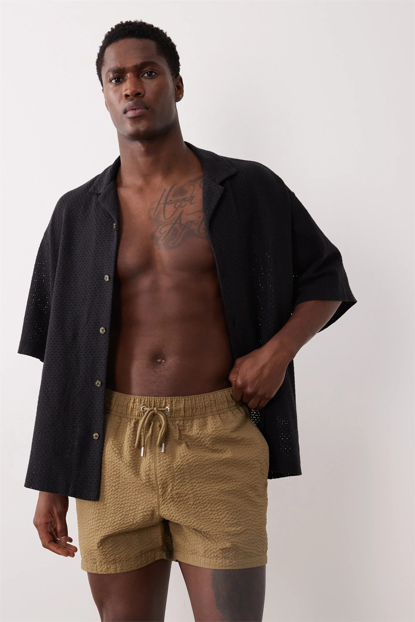 Ткань для купальников Seersucker: рельефная, морщинистая текстура Основной состав: 60% хлопок, 40% полиэстер.