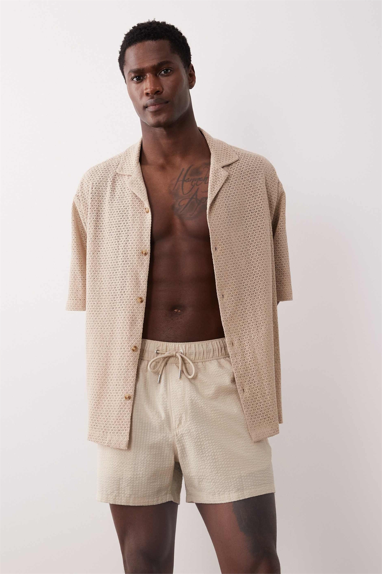 Пляжные шорты из сирсакера короткой длины бежевого цвета