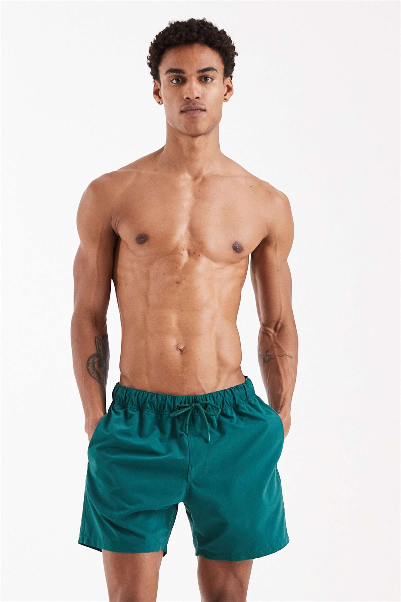 Плавательные шорты средней длины темно-зеленого цвета