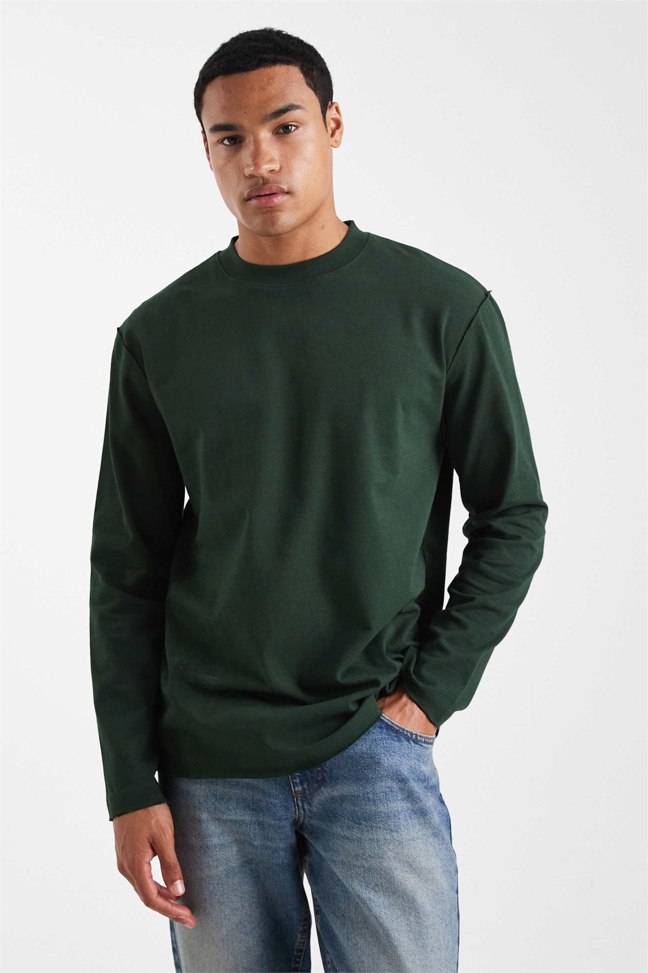 Толстая футболка свободного кроя с длинными рукавами и необработанным краем