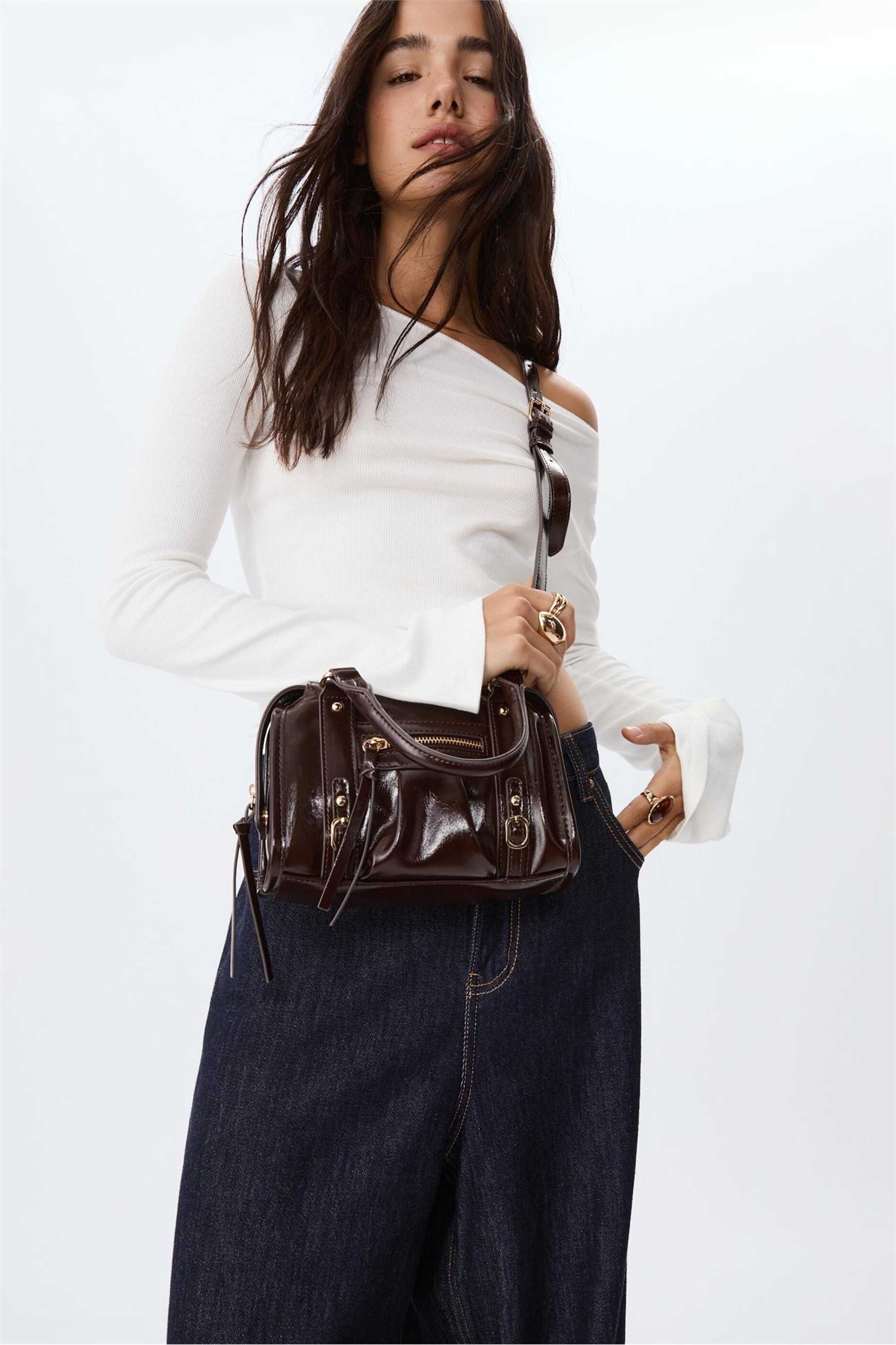 Сумка-боулинг через плечо из искусственной кожи