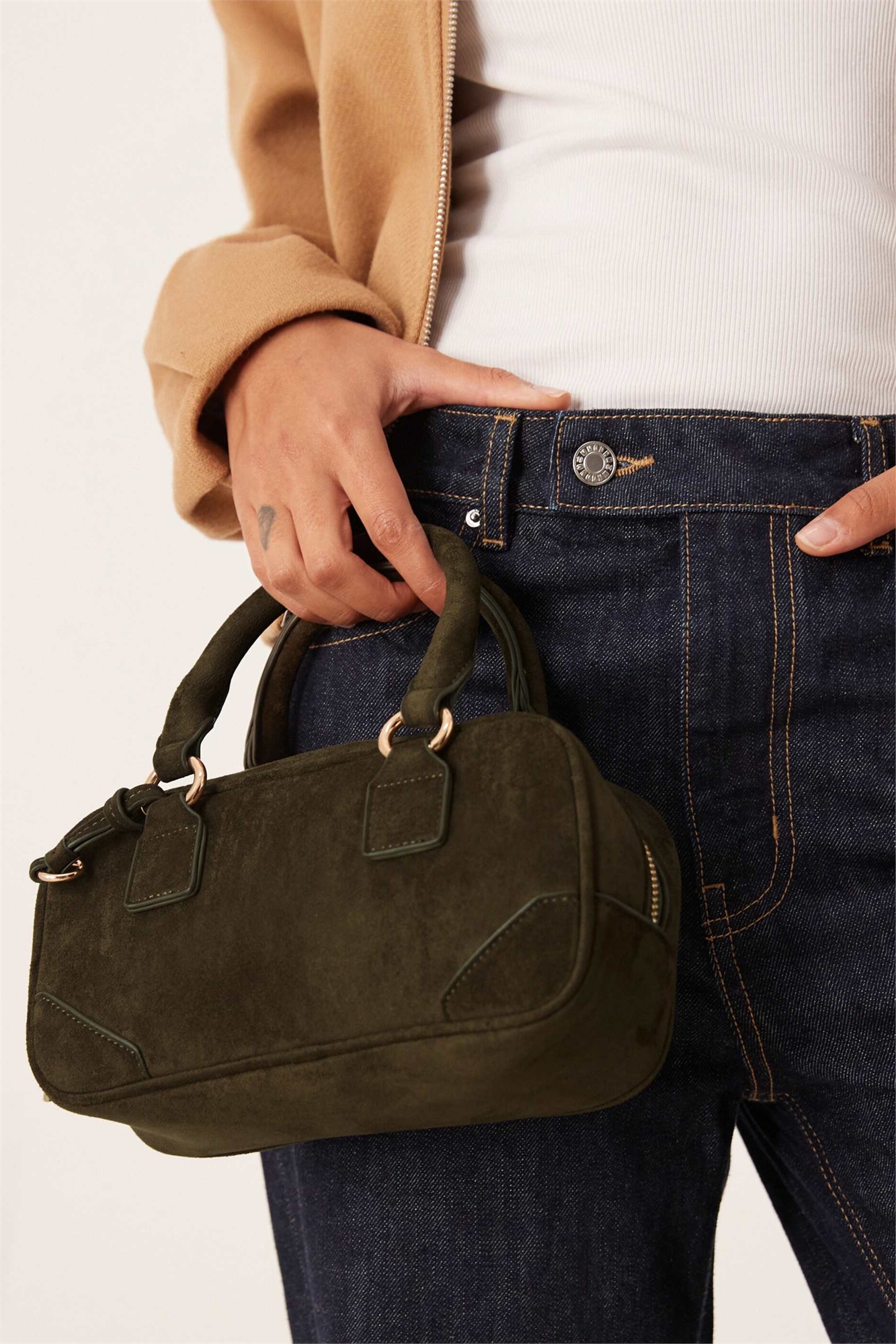 Мини-сумка-боулер из искусственной замши со съемным ремнем через плечо