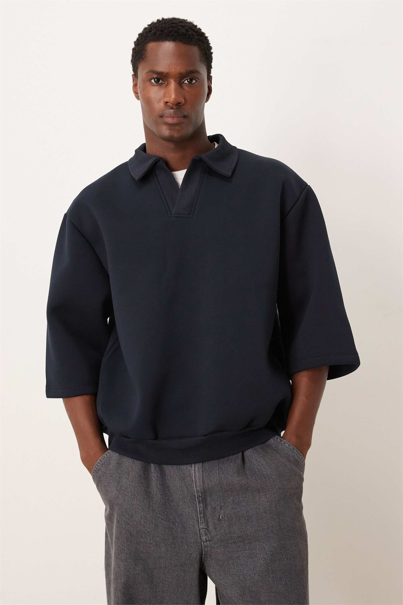 Свободная толстовка с рукавами 3/4 из ткани типа «скайба» в темно-синем цвете