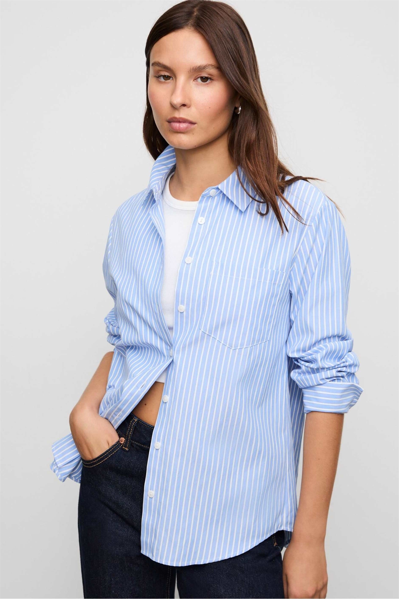 Простая рубашка из полосатого поплина с карманом