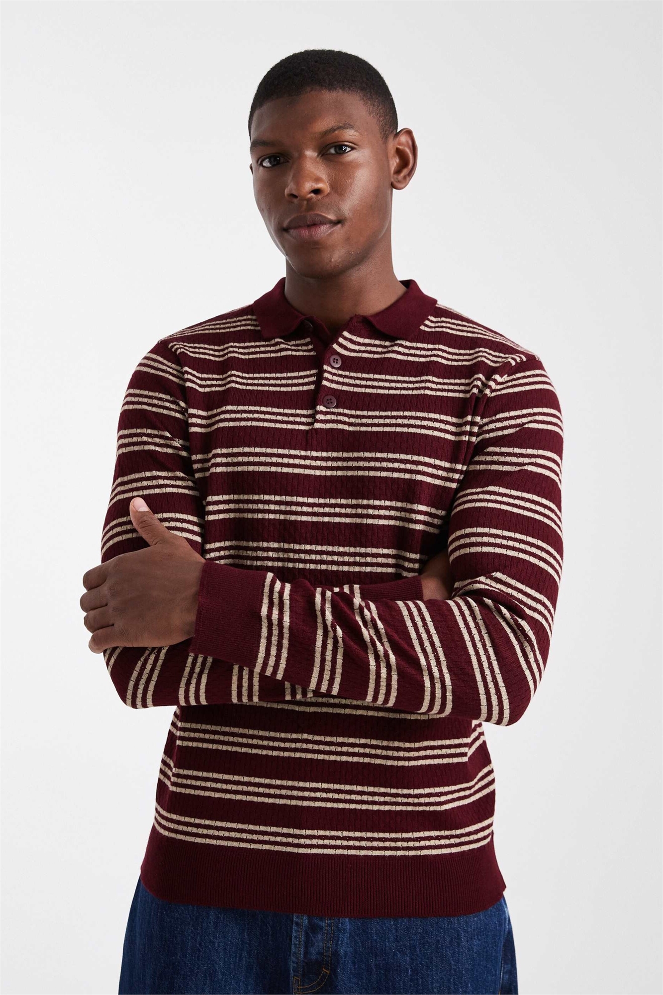 Трикотажная рубашка-поло с длинными рукавами в полоску