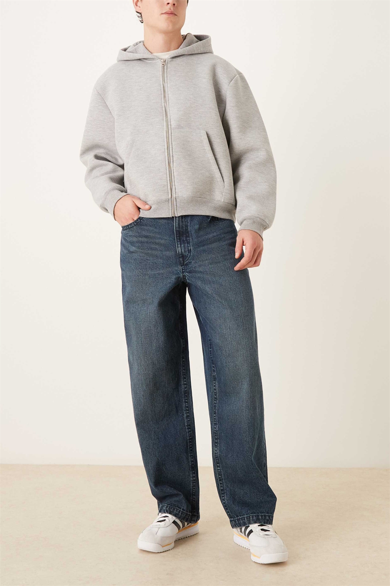 Джинсы свободного кроя с прямыми брючинами