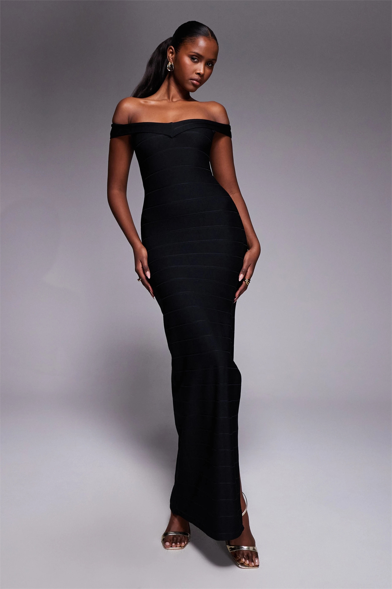 Эксклюзивное макси-платье с бандажным вырезом под грудью и разрезом сбоку