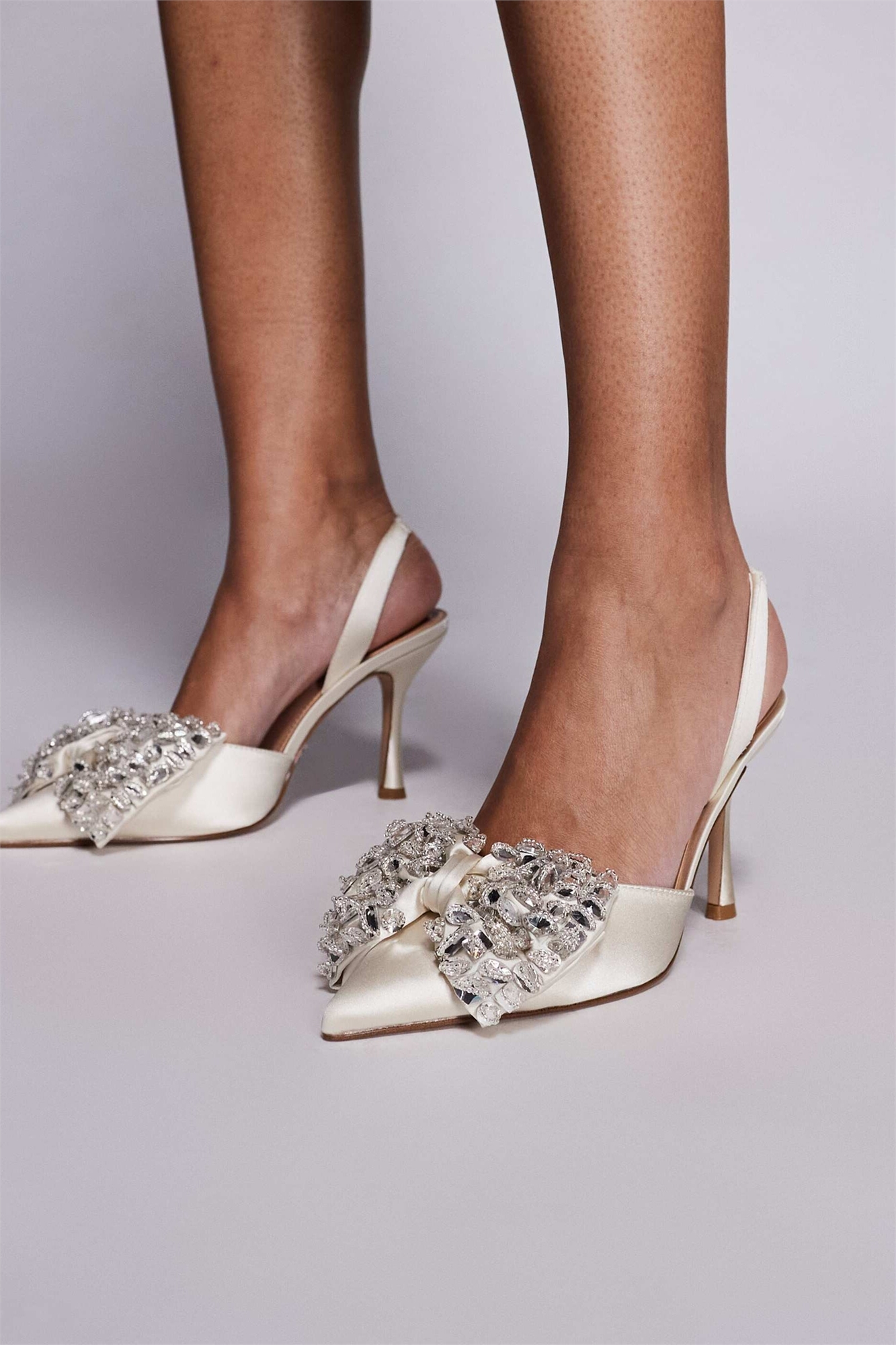 Туфли на каблуке с украшенным бантом