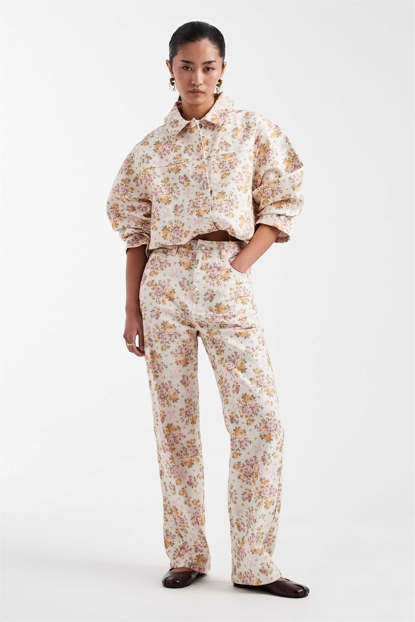 Джинсы из денима с цветочным принтом и прямым кроем co-ord