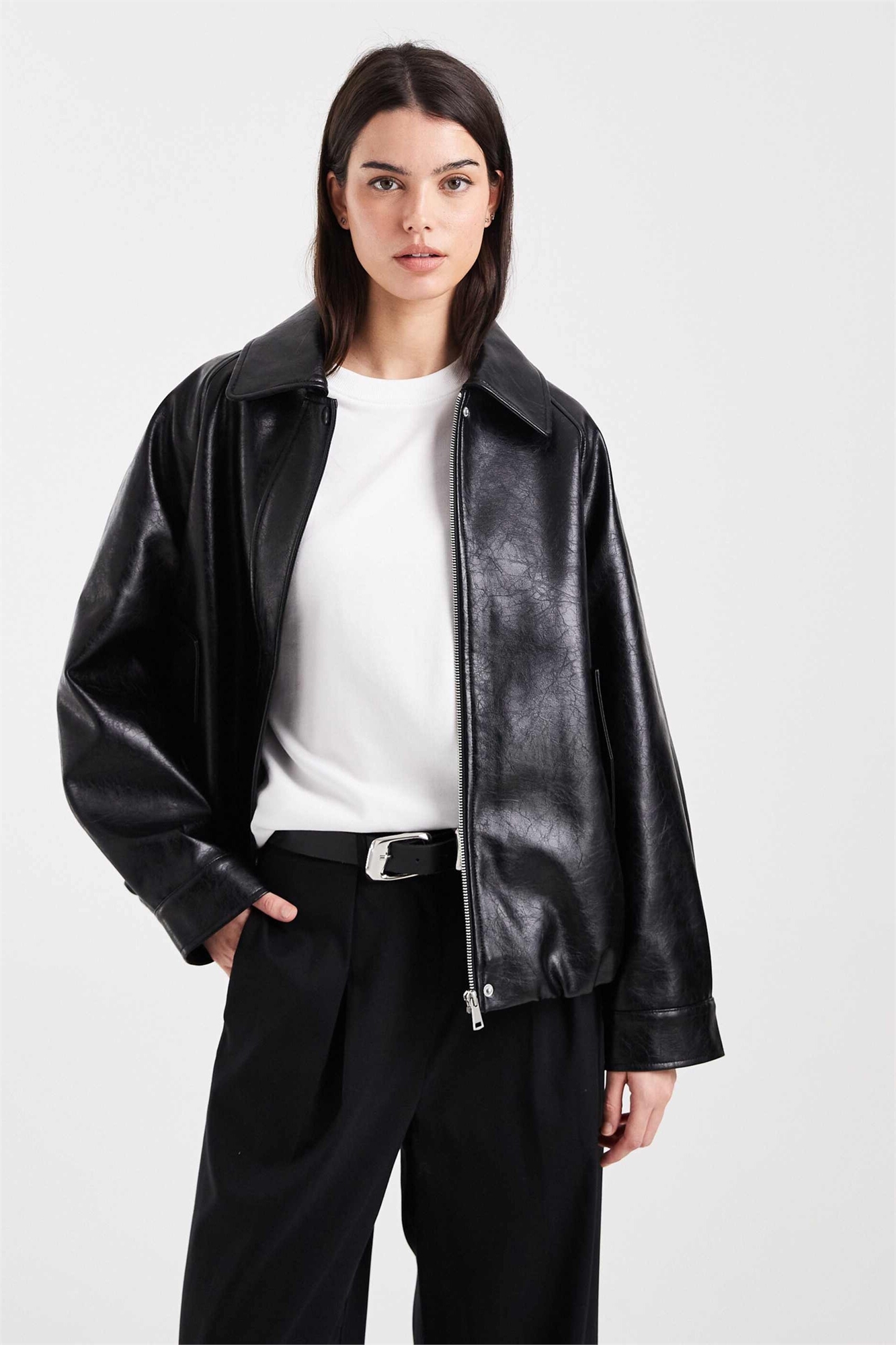 Бомбер свободного кроя под кожу