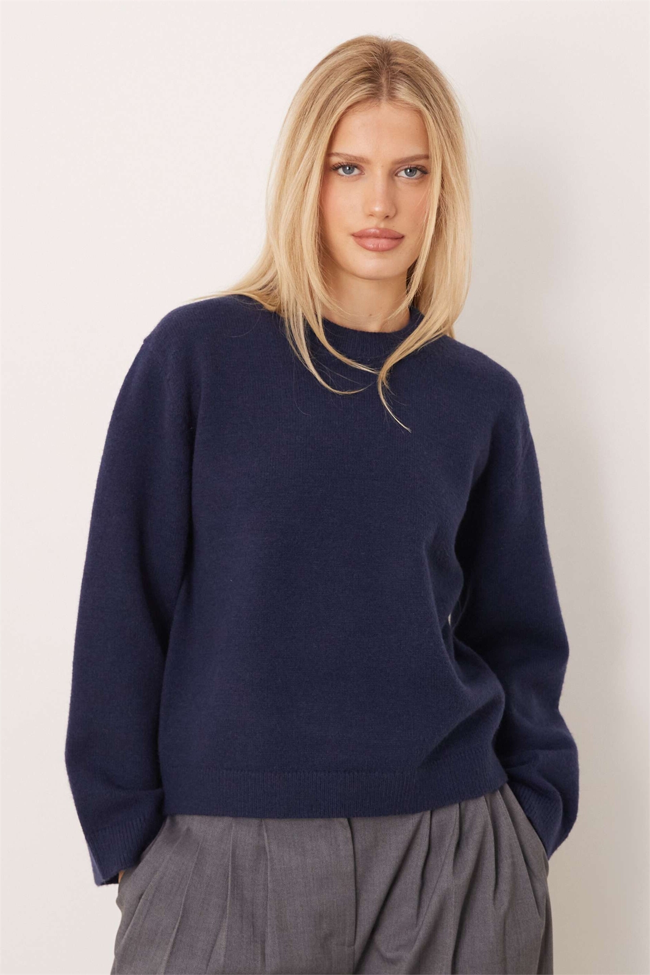 Трикотажный свитер с круглым вырезом и широкими рукавами