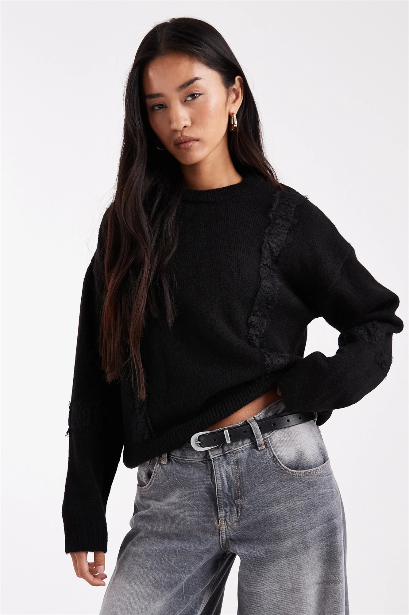 Свитер с широкими рукавами и кружевом
