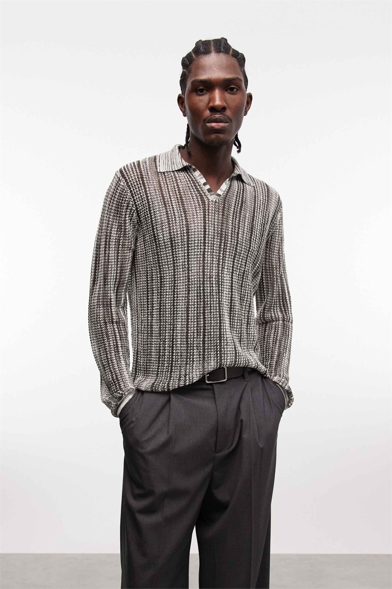 Трикотажная рубашка-поло с длинными рукавами, сетчатой текстурой и вырезом на горловине
