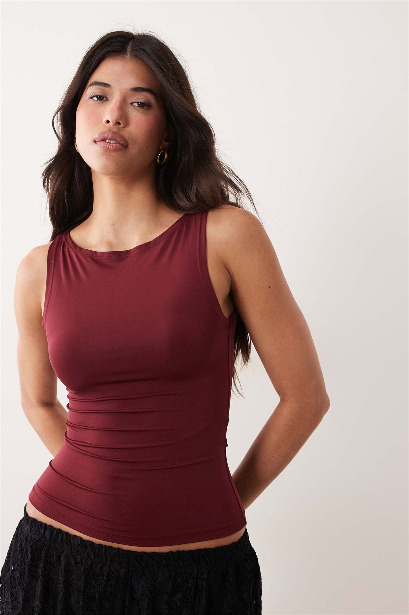 Облегающая майка с лодочным вырезом