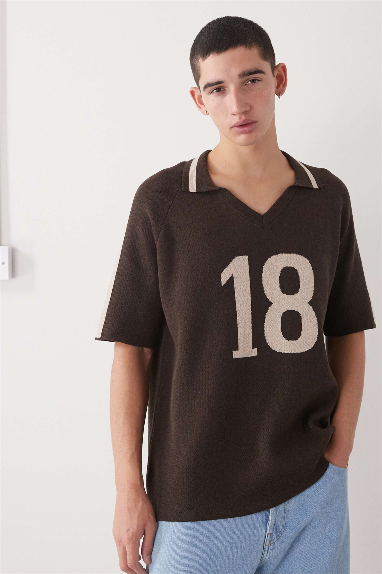 Вязаный топ-поло с боковой полосой шоколадно-коричневого цвета