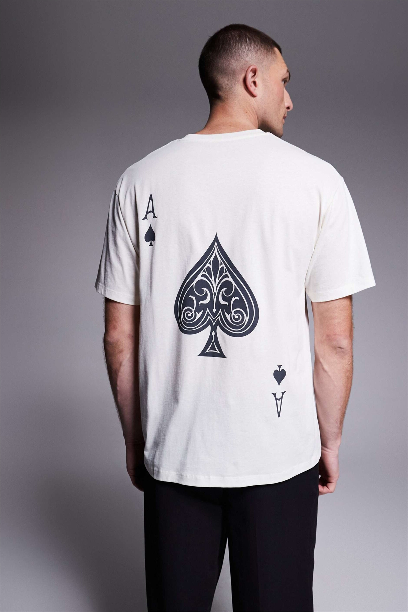 Футболка свободного кроя с принтом в виде пикового туза на спине