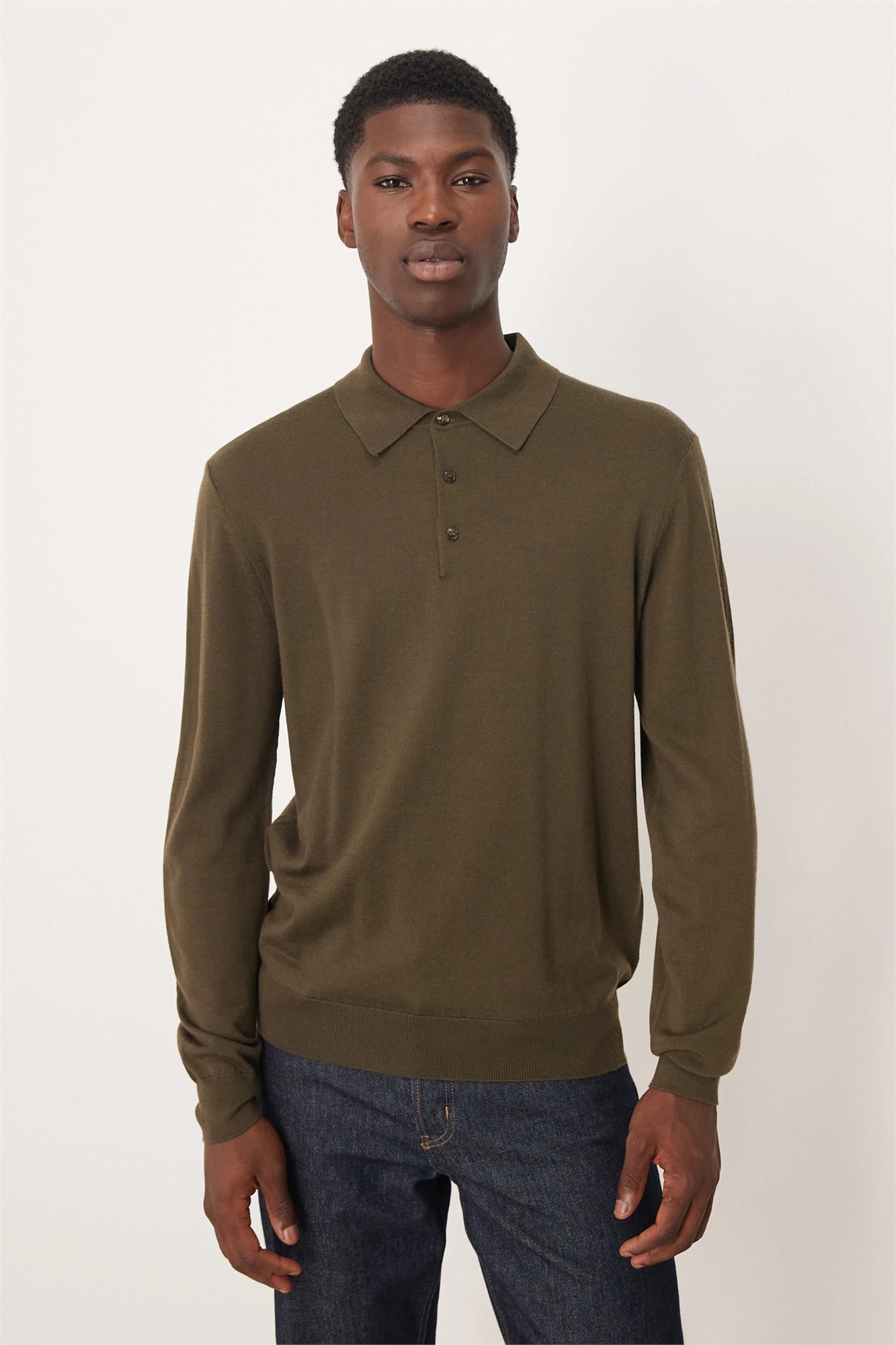 Трикотажная рубашка-поло с длинными рукавами на пуговицах из 100% шерсти
