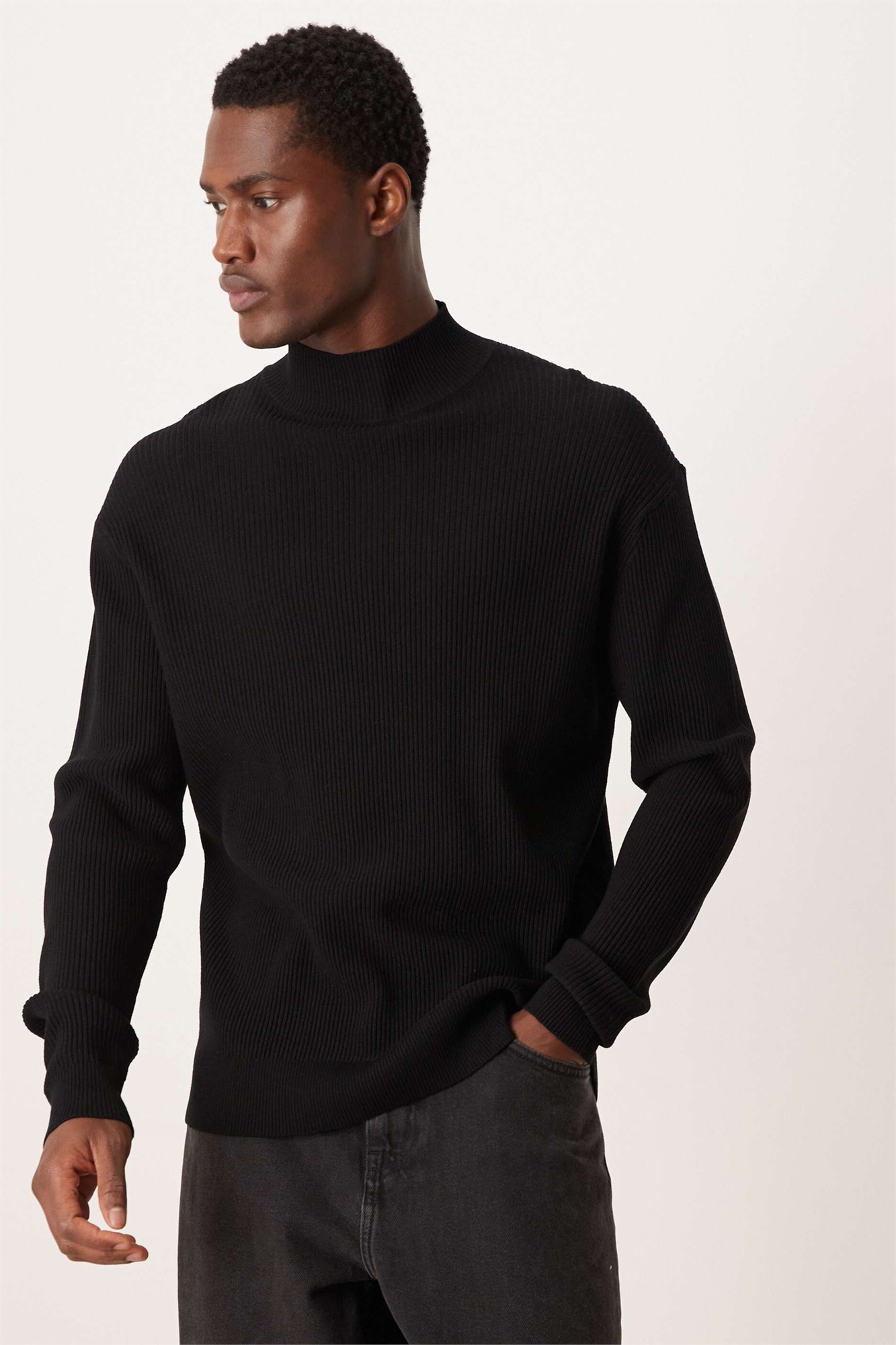 Классический свитер с высоким воротником и ребристой вязкой