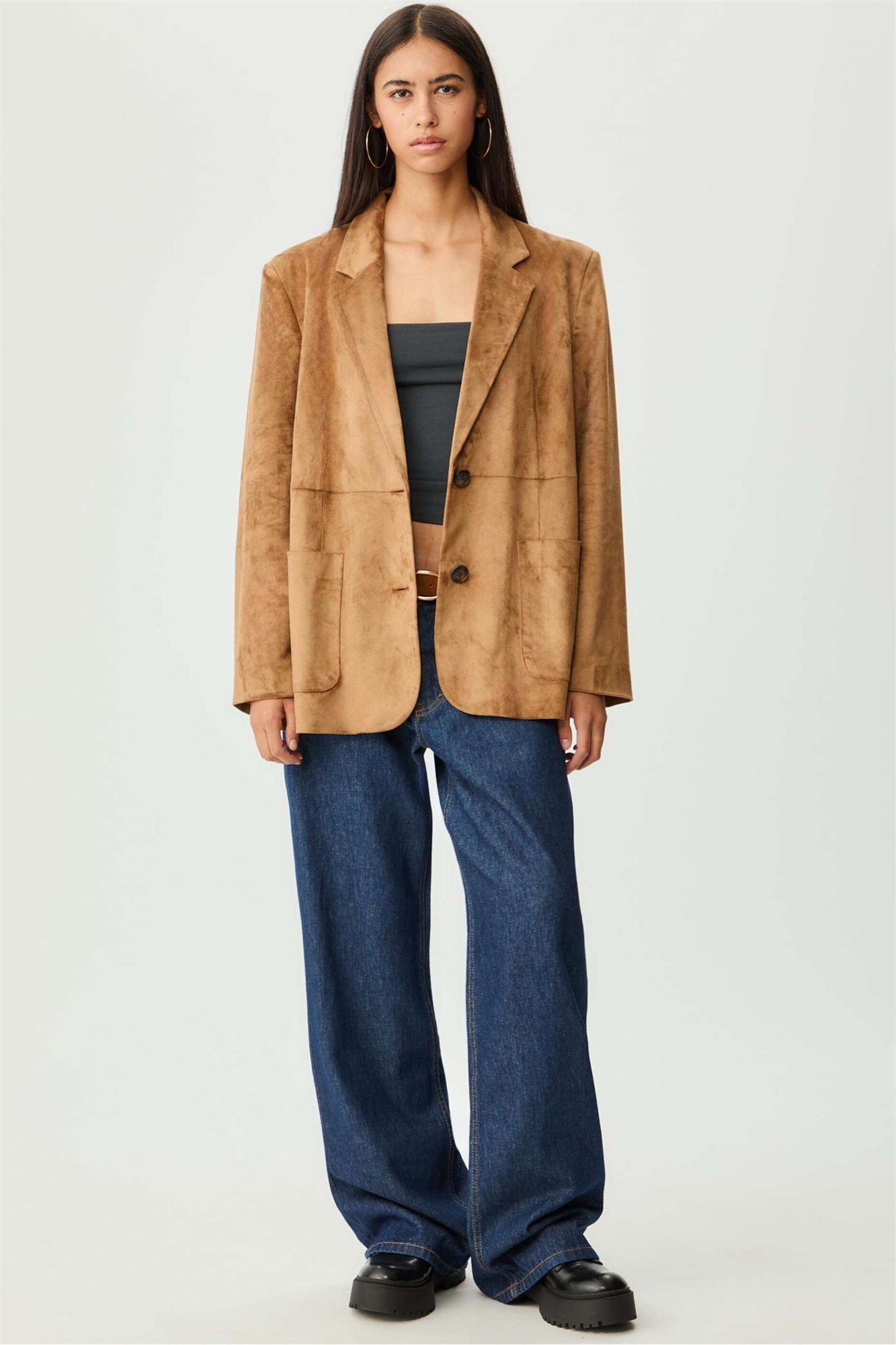 Блейзер из искусственной замши с карманами цвета «камень»