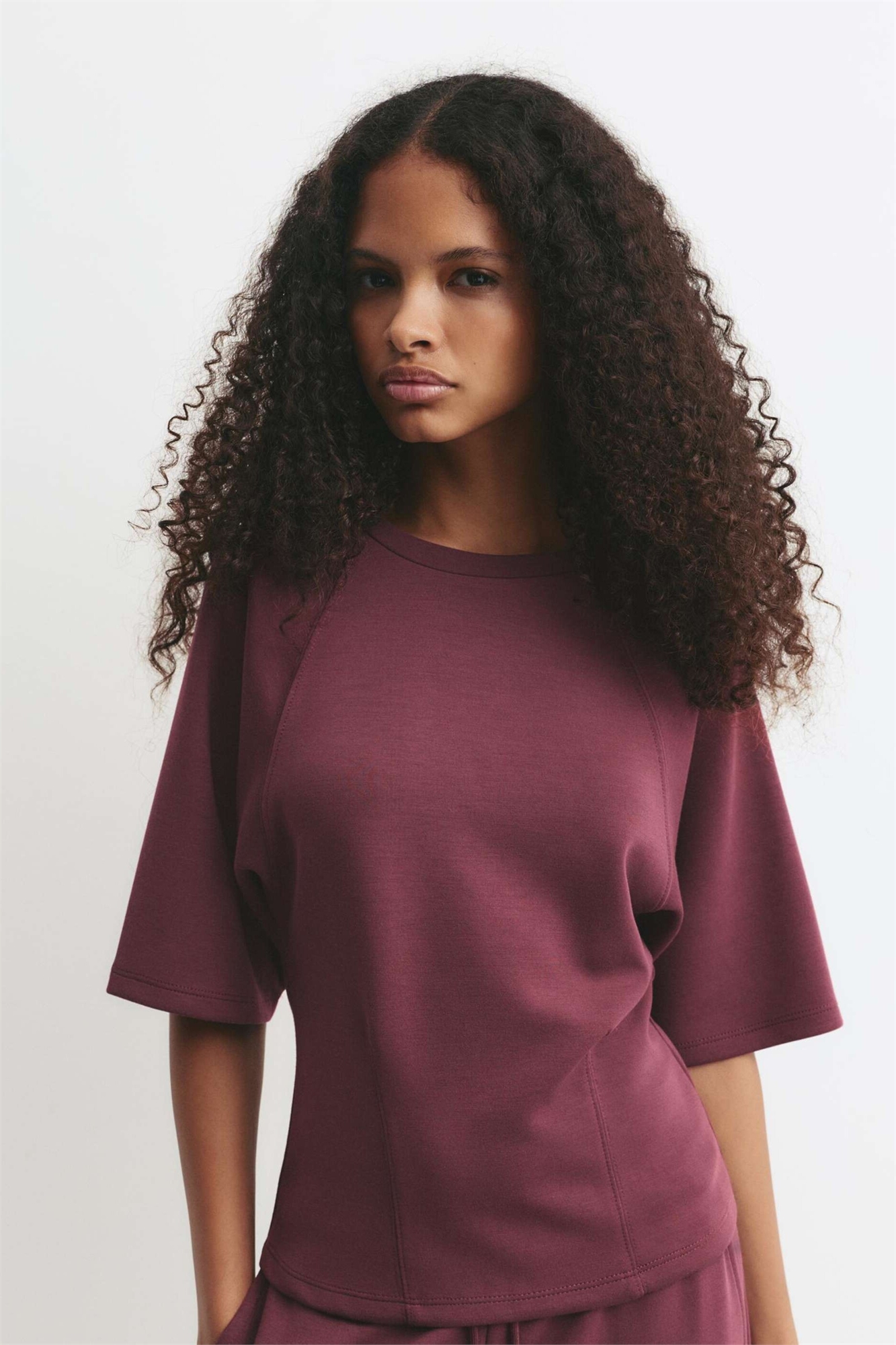 Ткань для толстовок: мягкая и теплая ткань с уютной рельефной текстурой с внутренней стороны. Основной состав: 55% модал, 40% полиэстер, 5% эластан.