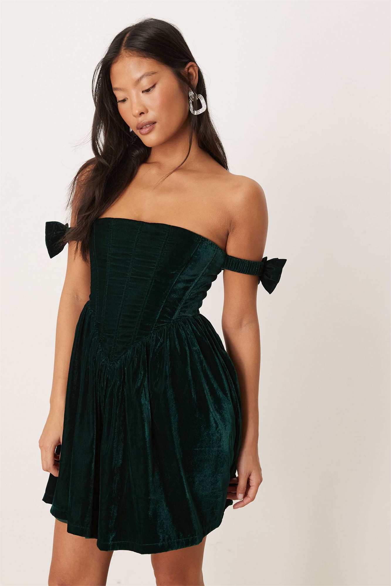 Мини-платье-корсет с бархатным бантом на рукаве