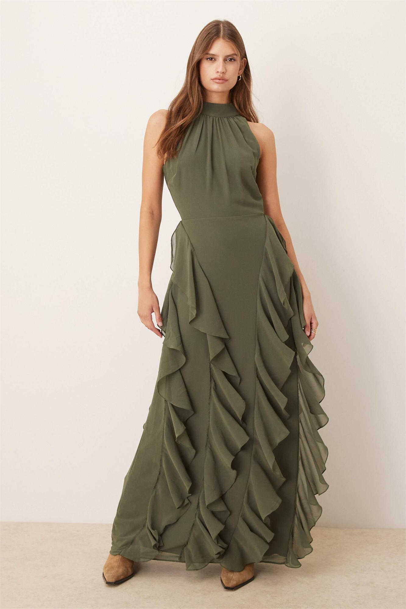 Макси-платье с оборками и открытой спиной