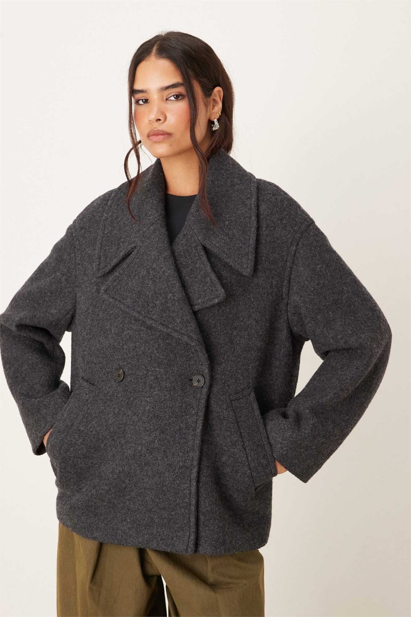 Короткий приталенный пиджак из смешанной шерсти