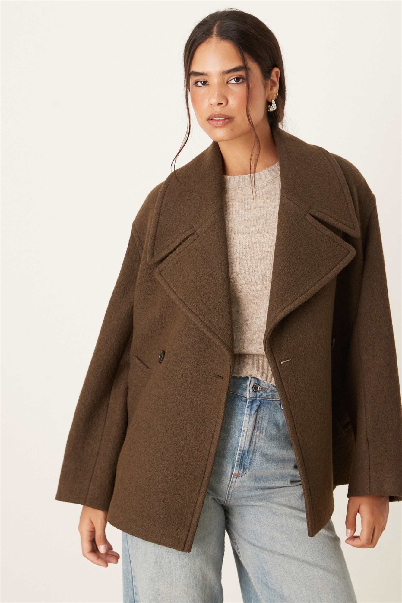 Короткий приталенный пиджак из смешанной шерсти