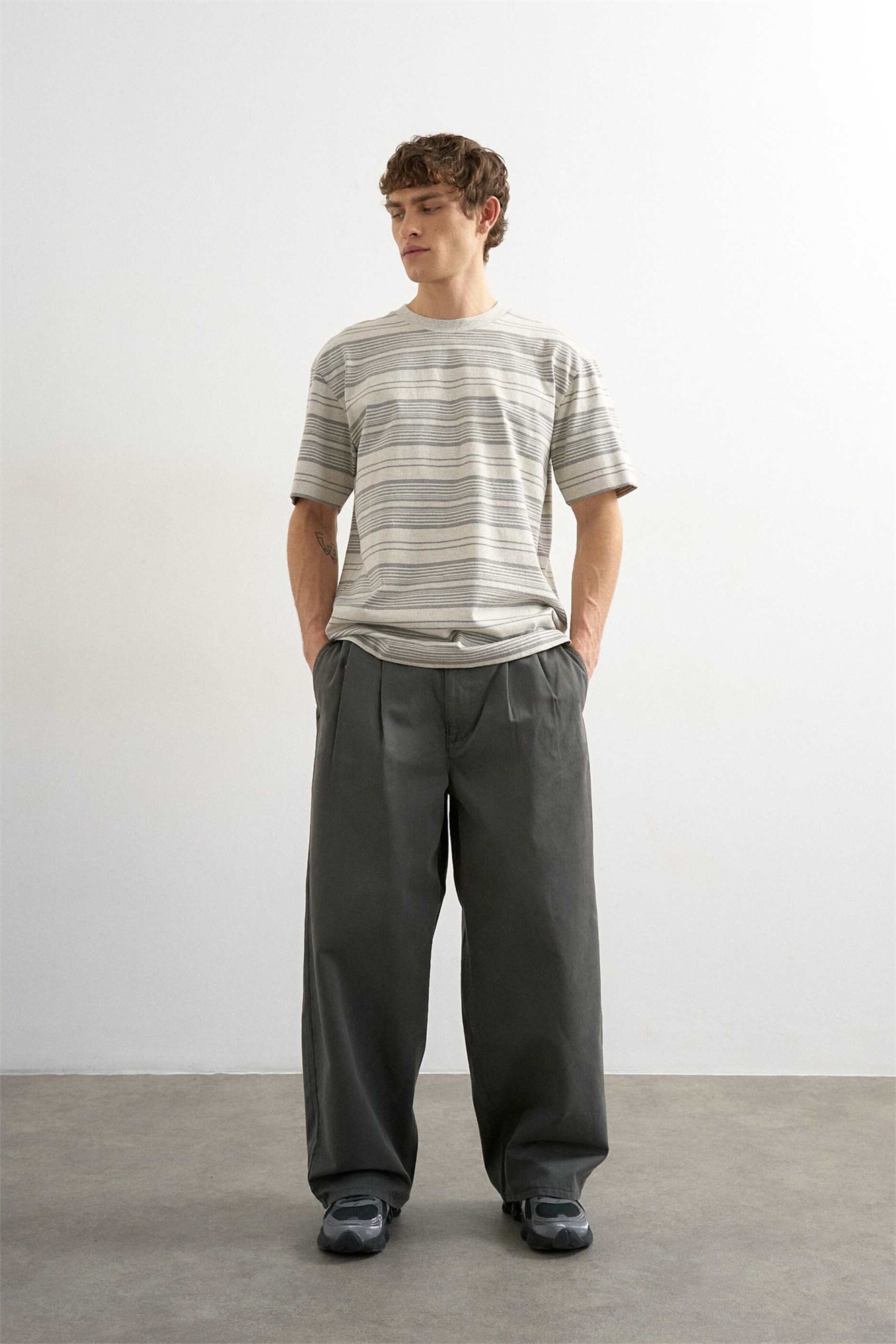 Брюки свободного кроя со складками