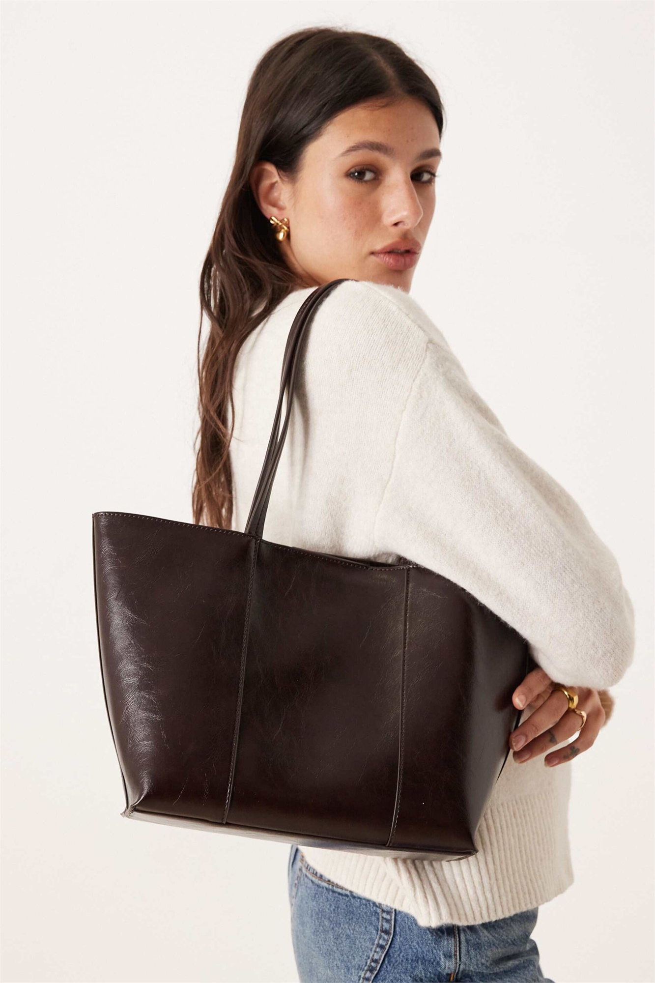 Сумка из искусственной кожи темно-коричневого цвета
