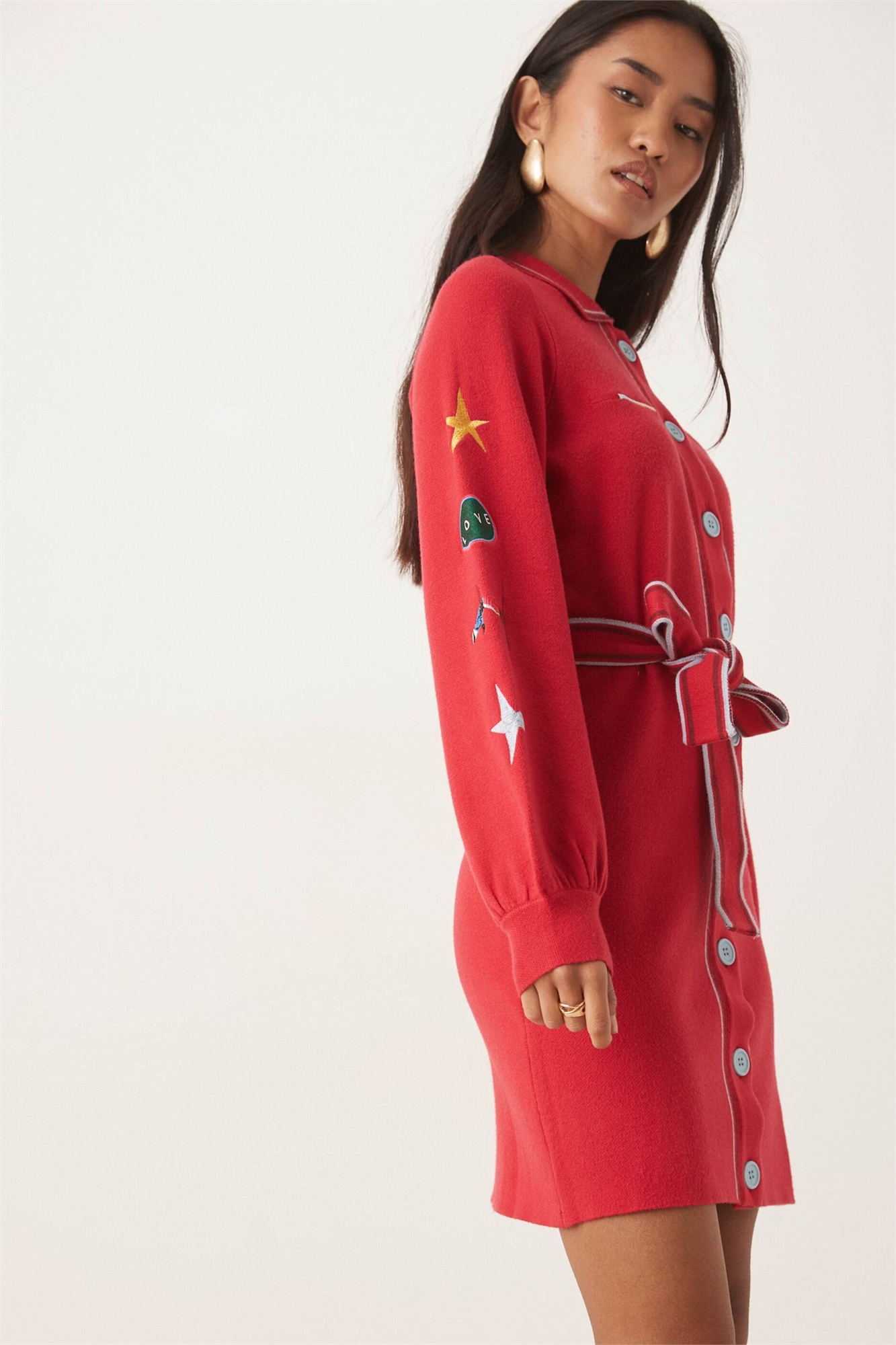 Мини-платье-кардиган с вязаным узором в стиле лыжного мотива