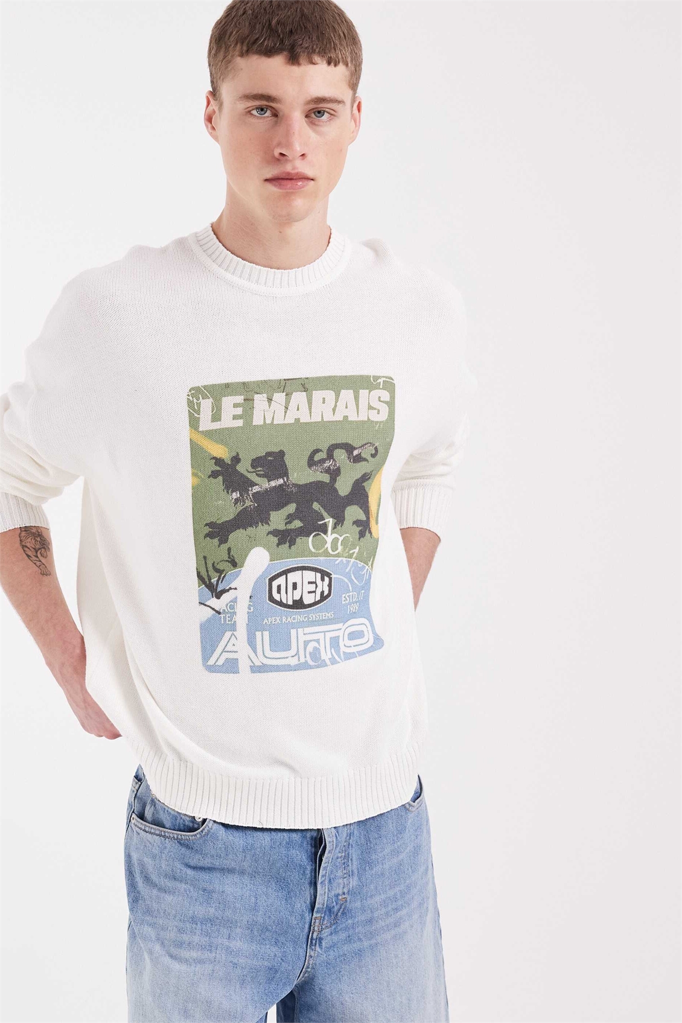 Свитер свободного кроя с круглым вырезом и принтом «Le Marais»
