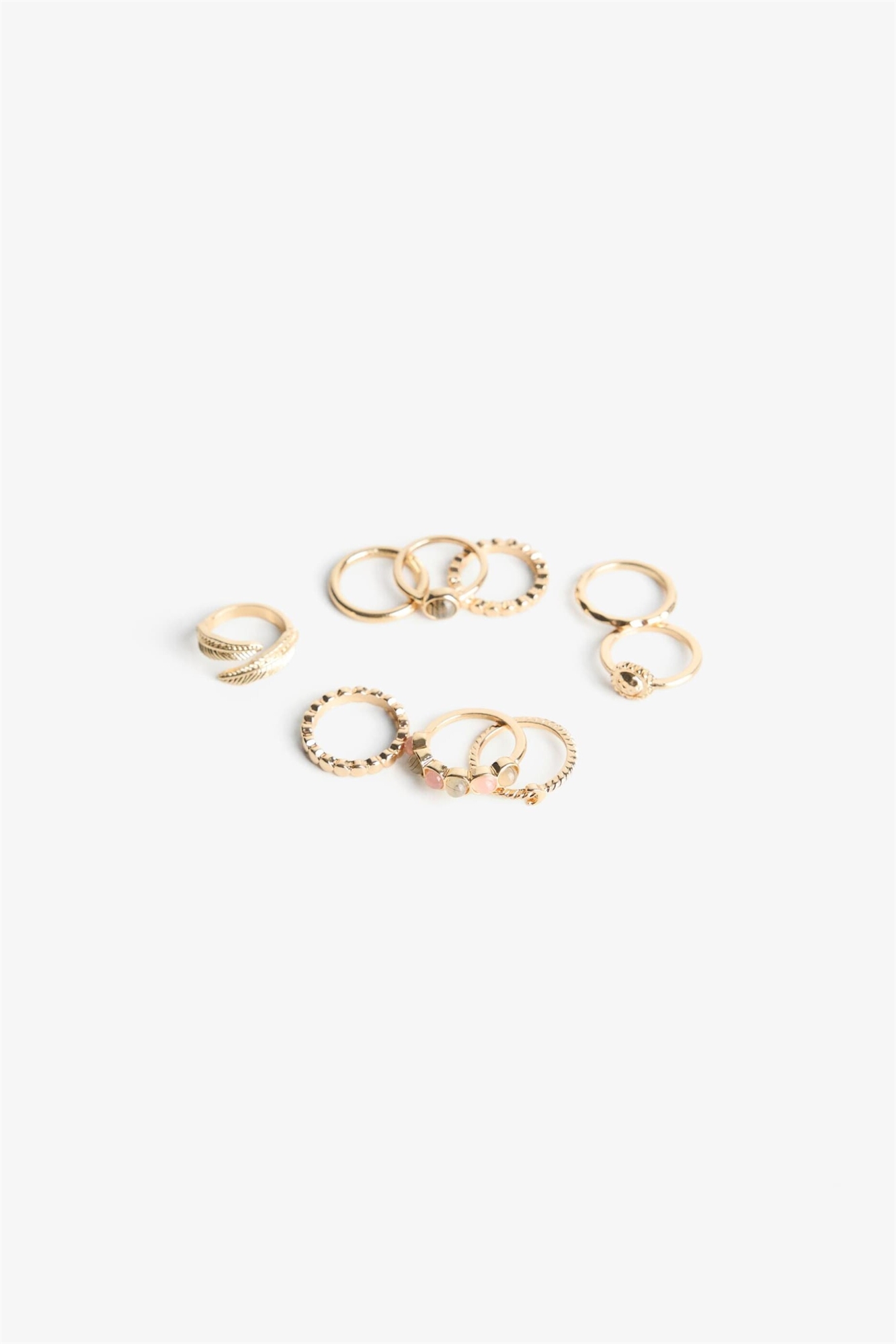 Набор из 9 колец со стразами, золотого цвета