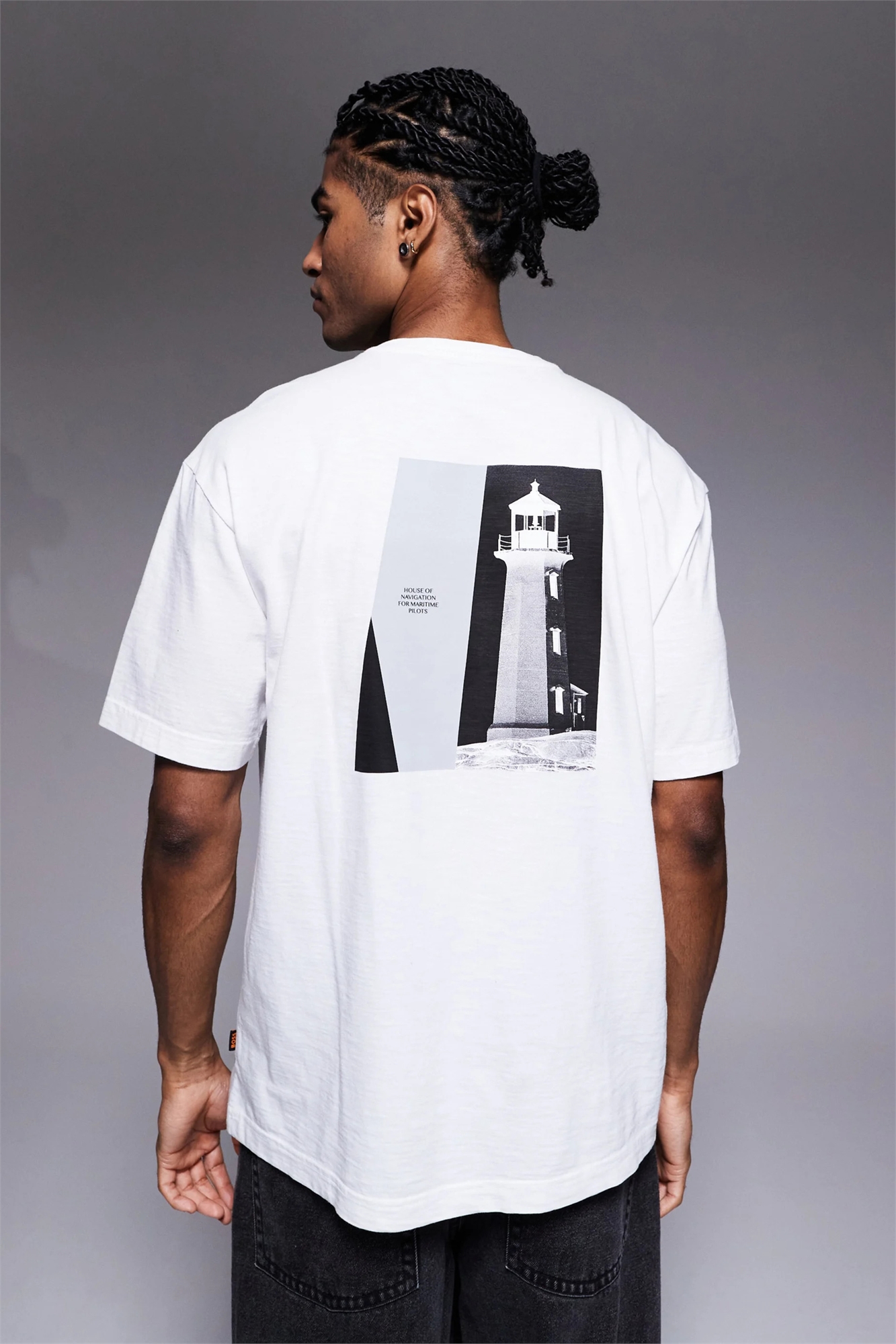 Футболка с принтом на спине и прямым кроем