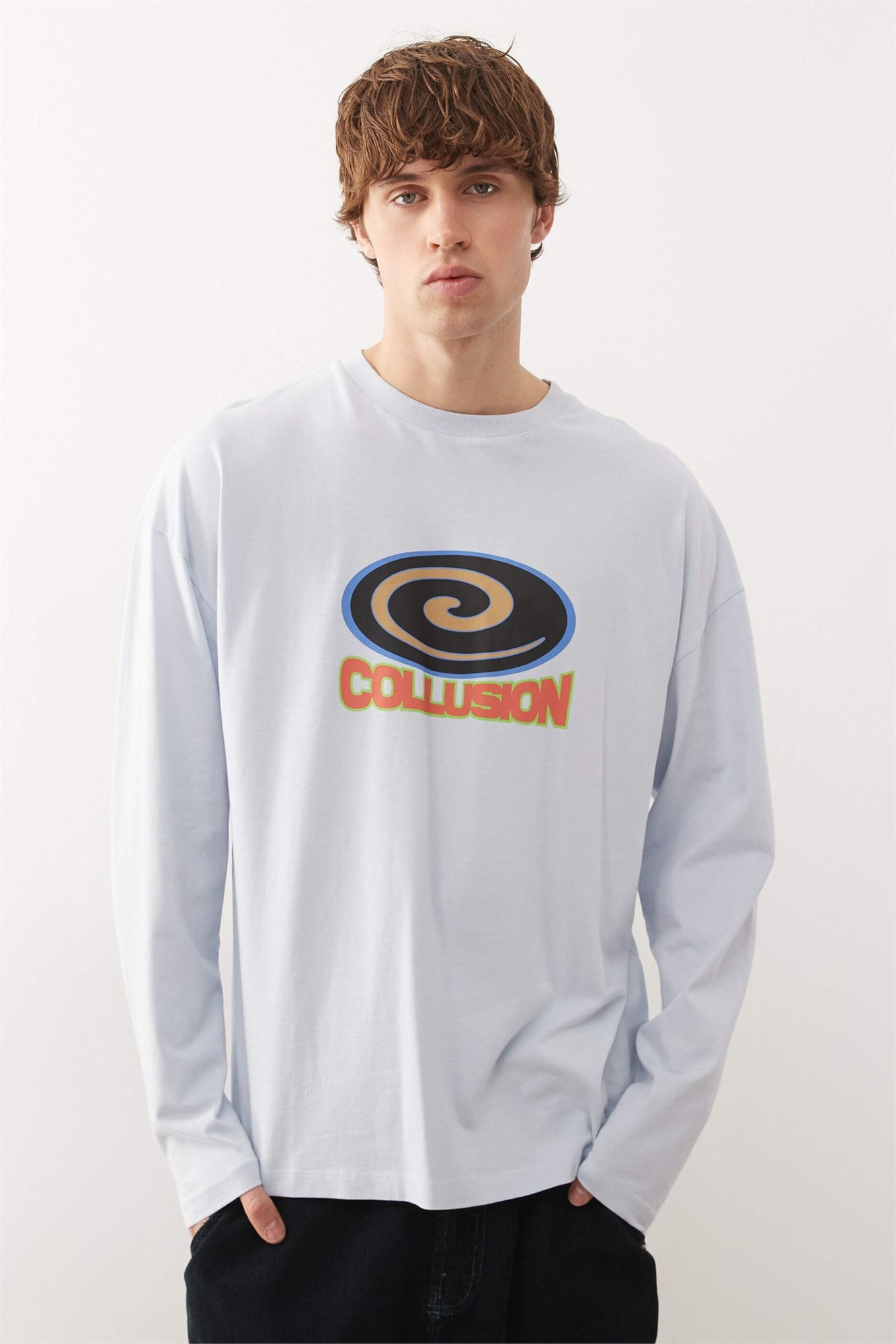 Детская футболка голубого цвета с длинными рукавами и принтом